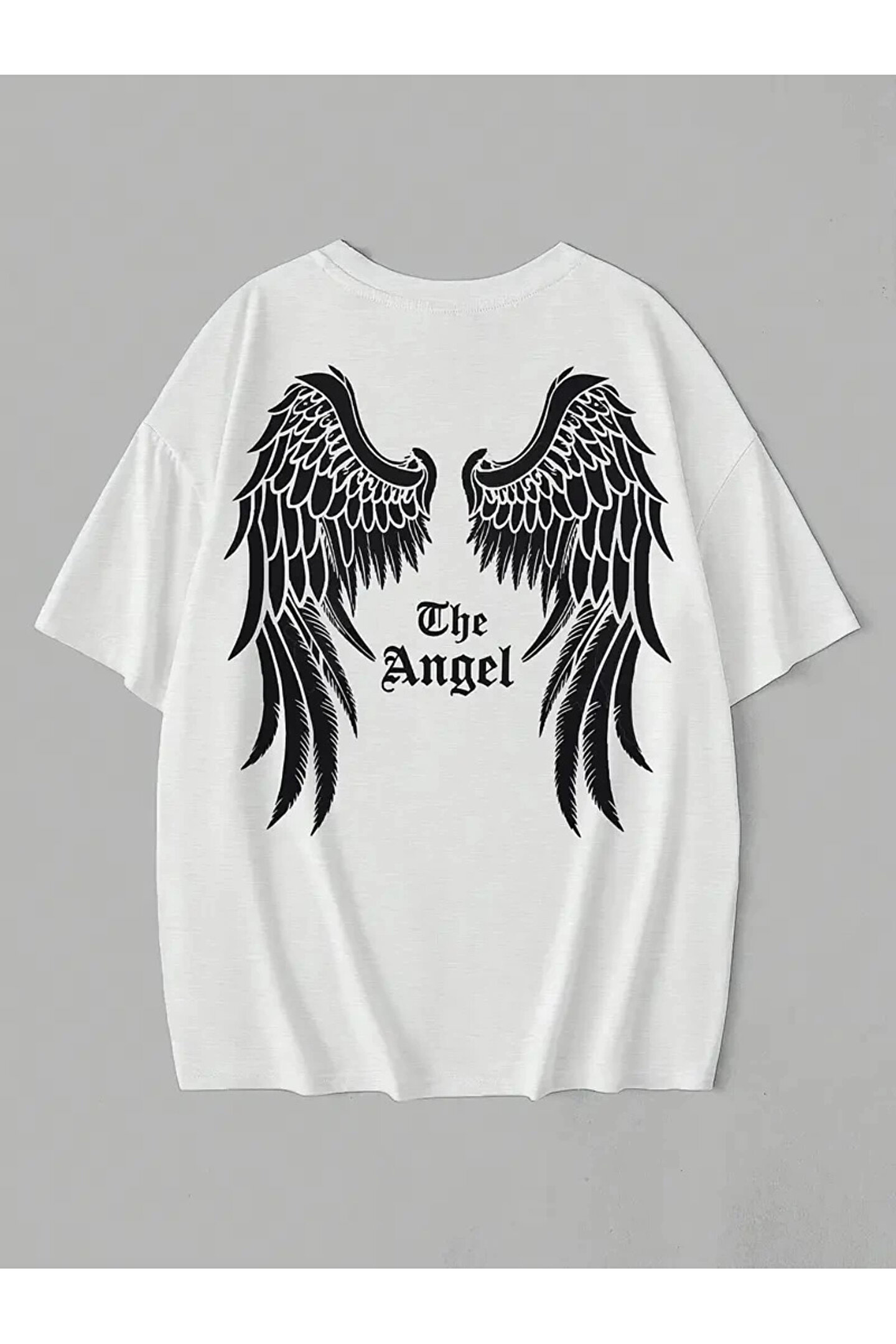 Megstill 201 Penye Compack Dark Angel Baskılı Oversize Kısa Kol Yazlık T-shirt- Beyaz