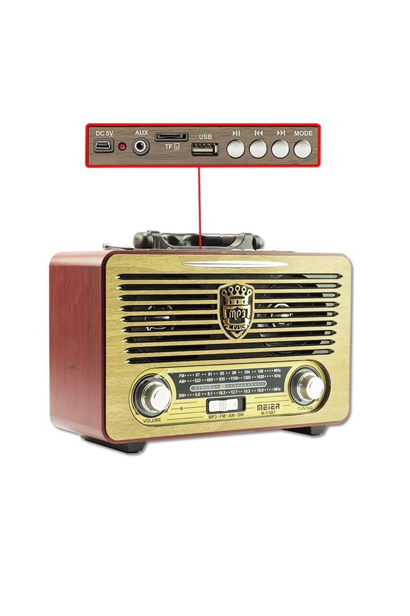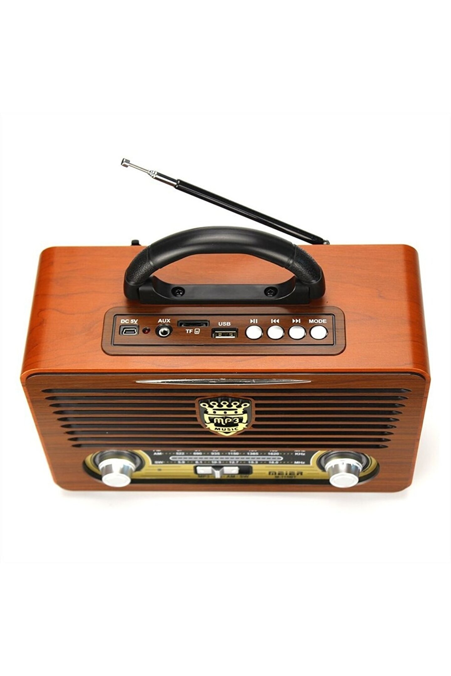 M 115bt Nostaljik Ahşap Retro Fm Radyo Usb Sd Bluetooth Bluetooth portable şarjlı hoparlörler sd/ kartlar ile usb flash belleklerin içindeki mp3 leri okuyabilen standart üstü ürünlerdir. ; fm frekansları ile istediğiniz radyo istasyonunu dinleyebilirsiniz şık tasarımı ve taşınabilir yapısı ile istediğiniz yere götürün .Bahçenizde, balkonunuzda, piknikte, seyahatte, elektiriğe uzak yerlerde şarjlı yapısı ile rahatça kullanabilirsiniz. ; sesli ders notlarınızı dinleyebilirsiniz. ; ayrıca notebook pc mp3 çalar gibi ürünlere ihtiyaç kalmadan radyodan veya hafıza kartı usb bellekten müziklerinizi dinleyebilirsiniz güçlü ses ile dilediğiniz müziğe doyacaksınız. ; Fm / am / sw 1-2 4 band radyo Usb / sd/ tf kart girişi Bluetooth fonksiyonu Dsp radyo / stereo Dahili şarj edilebilir batarya Pil yuvası(büyük boy pil x2) Şarlı ve pilli Uzaktan kumandalı 2 adet d büyük pil ile çalışır. ; teyp fişi kutu içerisinde vardır. ; Teyp fişi ile şarj edilebilir. ; dc 5 v adaptör girişi vardır. ; (adaptör kutu içinden çıkımaz.) Kutu içeriği : Nostaljik radyo Uzaktan kumanda Teyp fişi Boy : 23 cm Derinlik : 9,5 cm Yükseklik: 16 cm;