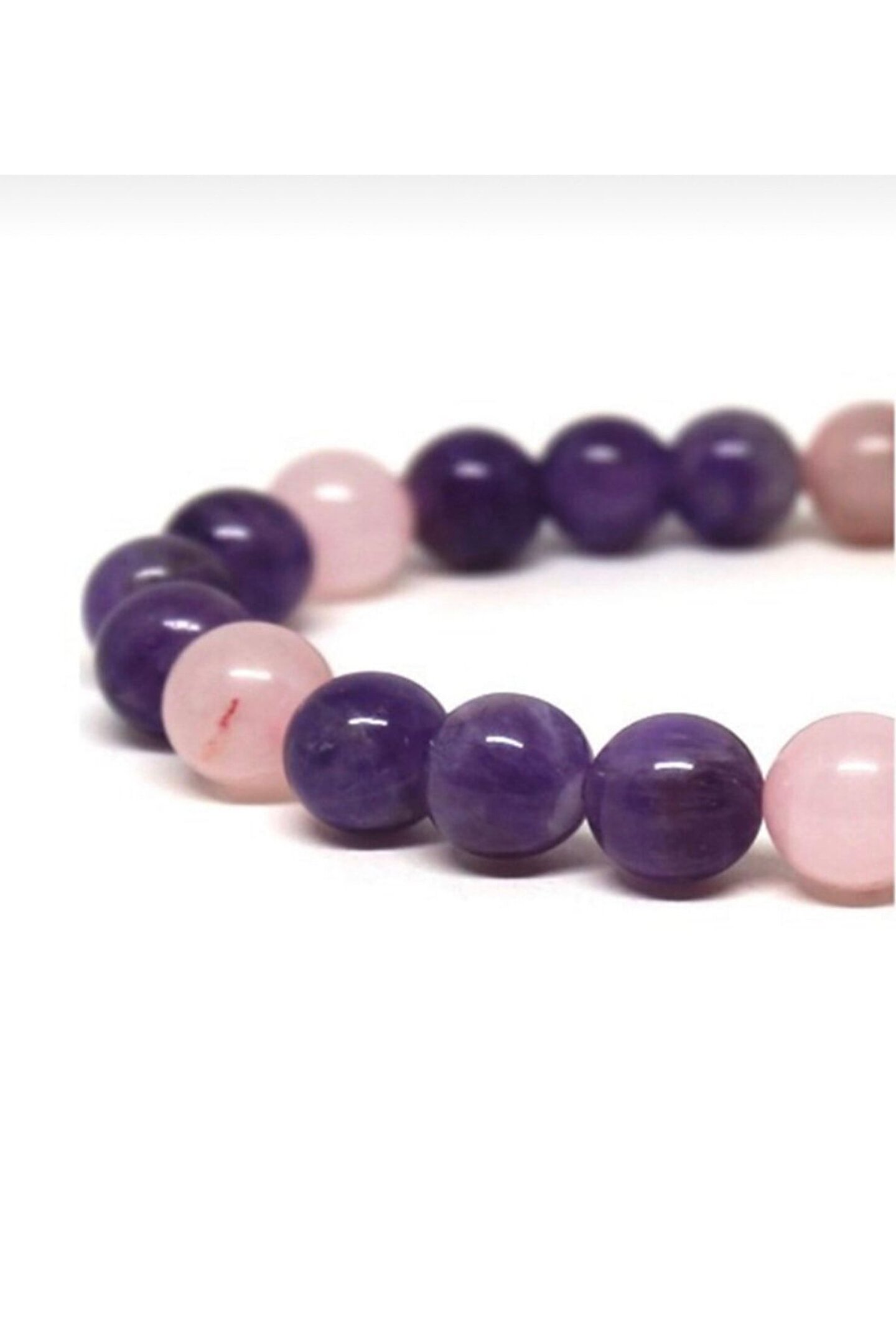 Doğal taş pembe kuvars ametist bileklik, şıklığınızı tamamlayacak zarif bir aksesuardır; Pembe kuvarsın doğal tonları, bilekliğinize sıcak ve huzurlu bir görünüm kazandırır; Ametist taşı, enerjiyi dengelemeye yardımcı olur ve stresle başa çıkmanıza destek olur; Doğal taş materyali ile her parça benzersizdir ve doğanın güzelliklerini bileğinizde taşımanızı sağlar;