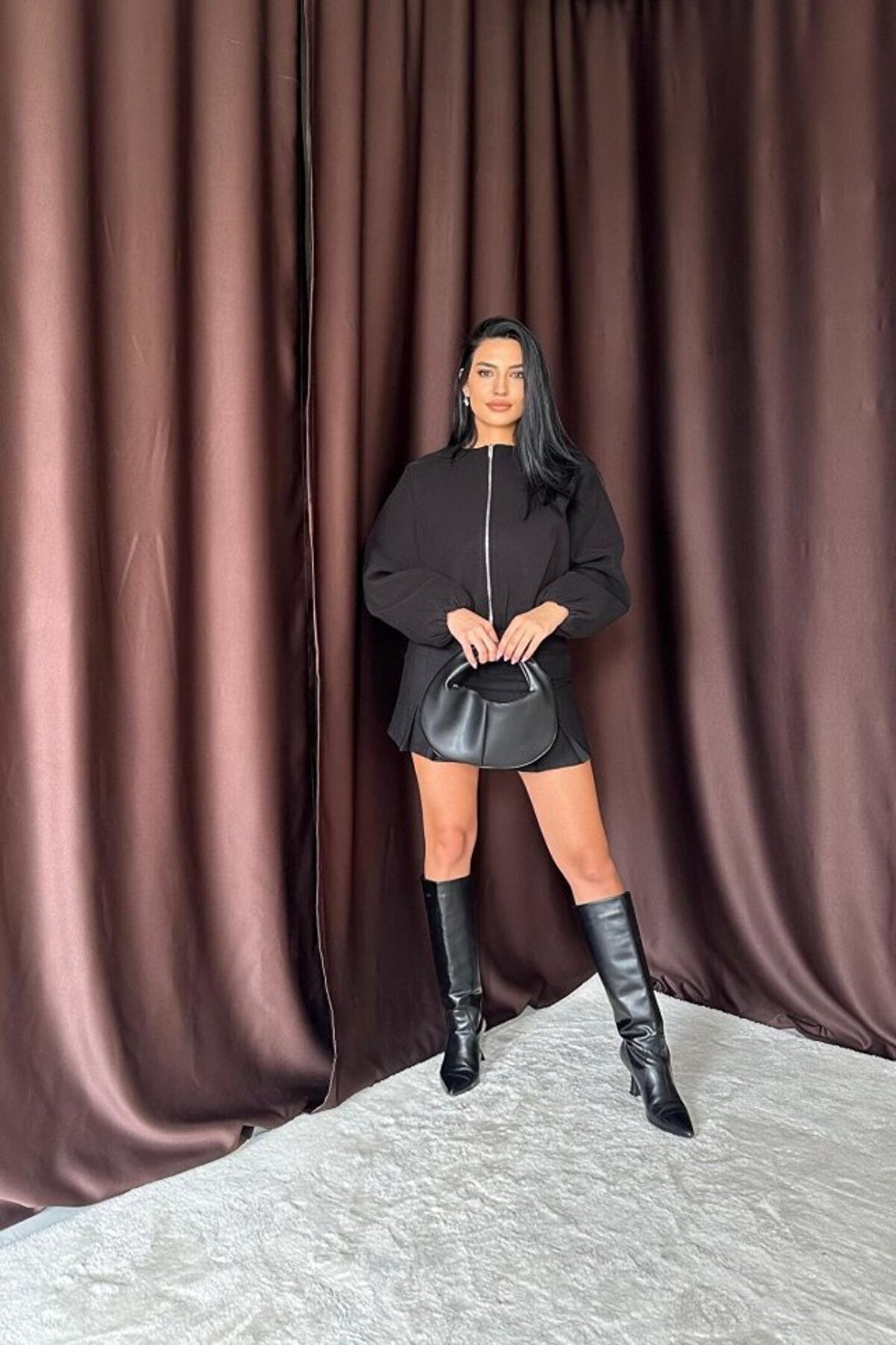 Melek Moda Siyah Kısa Önü Fermuarlı Bomber Ceket