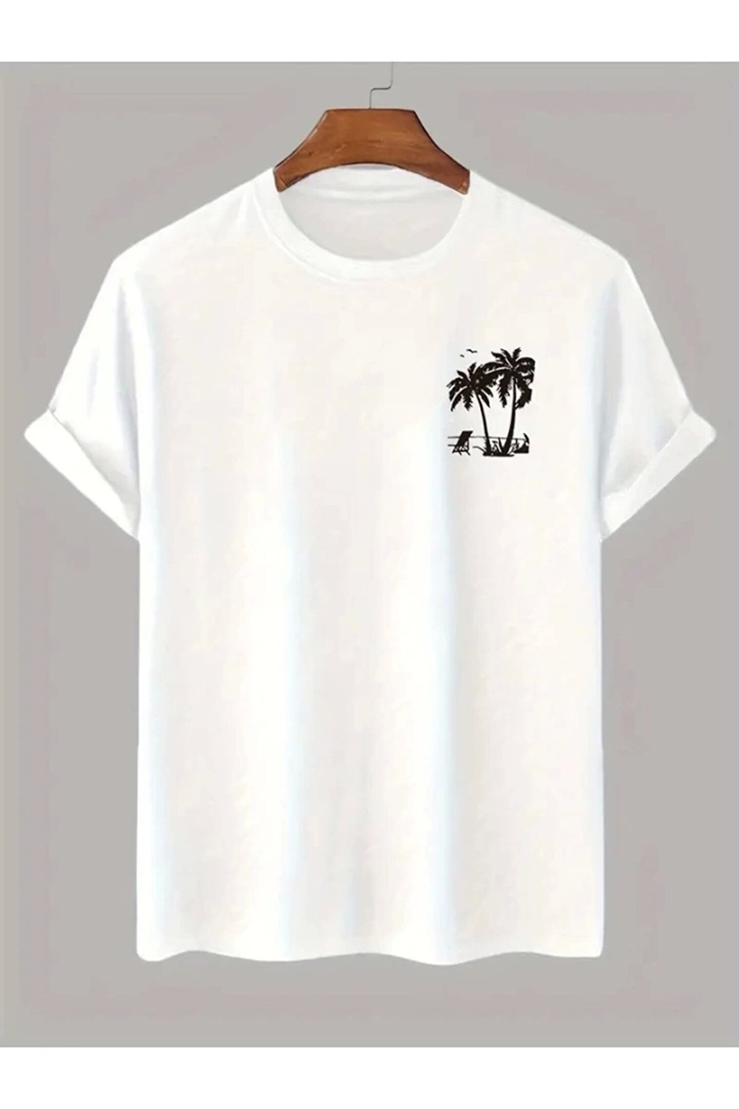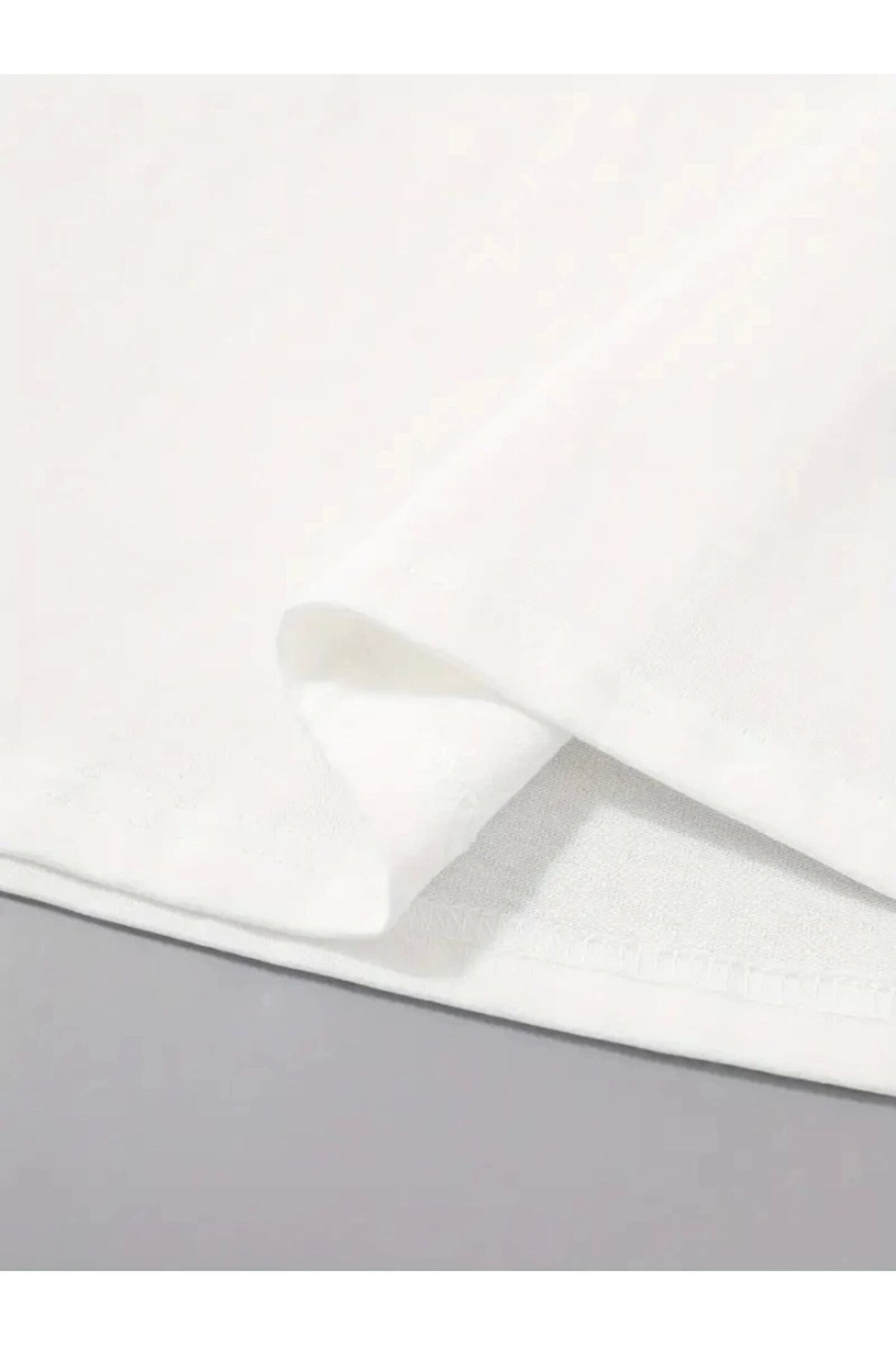 Baskılı Oversize Bisiklet Yaka T-shirt - Beyaz
