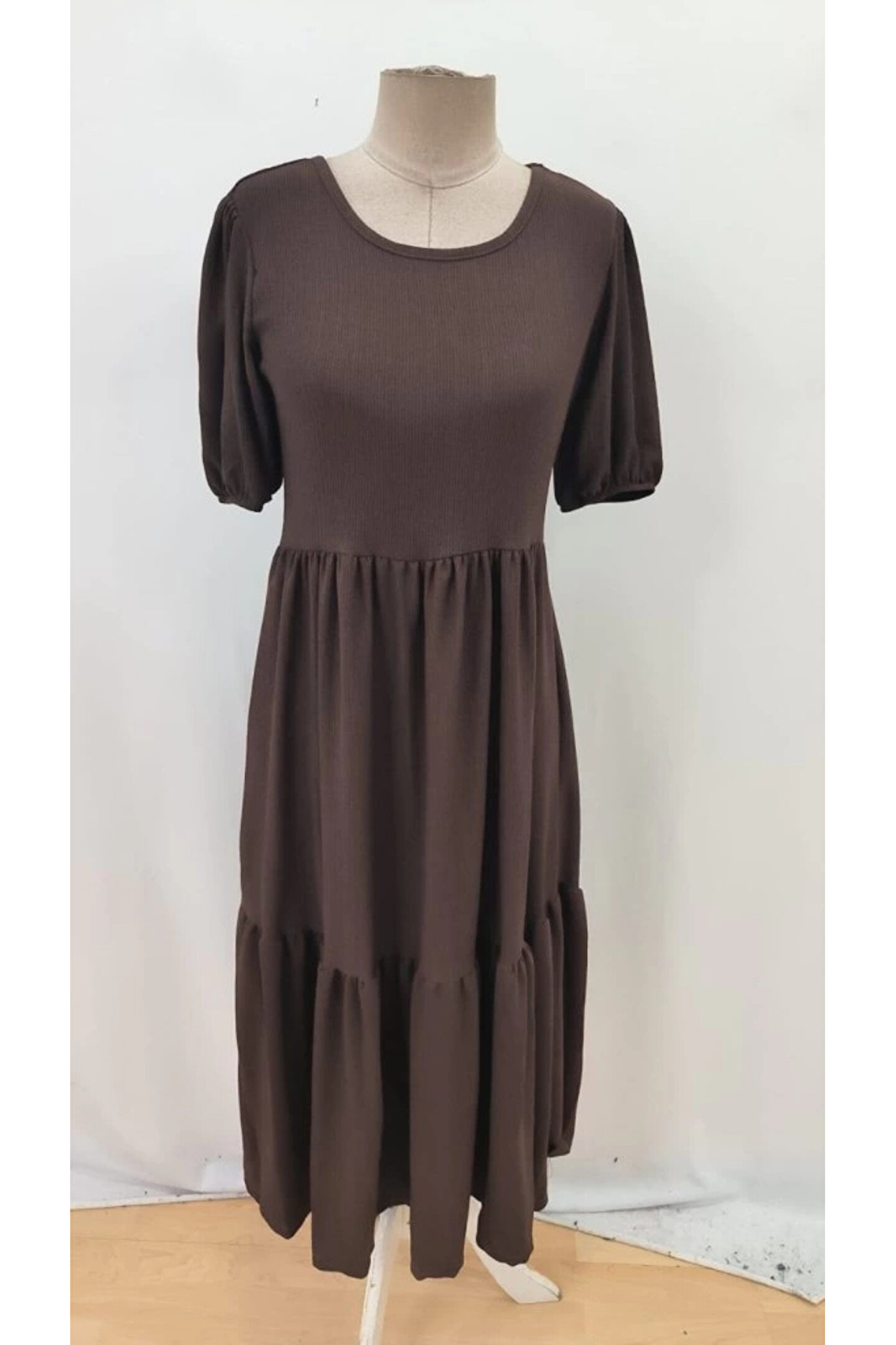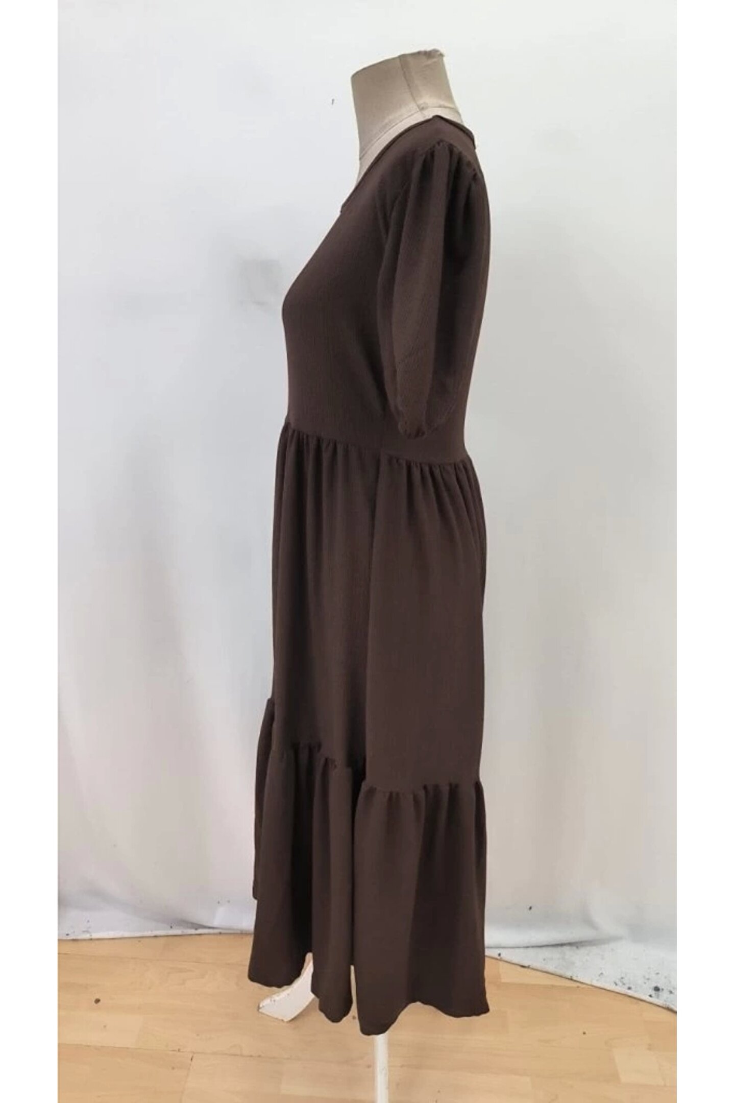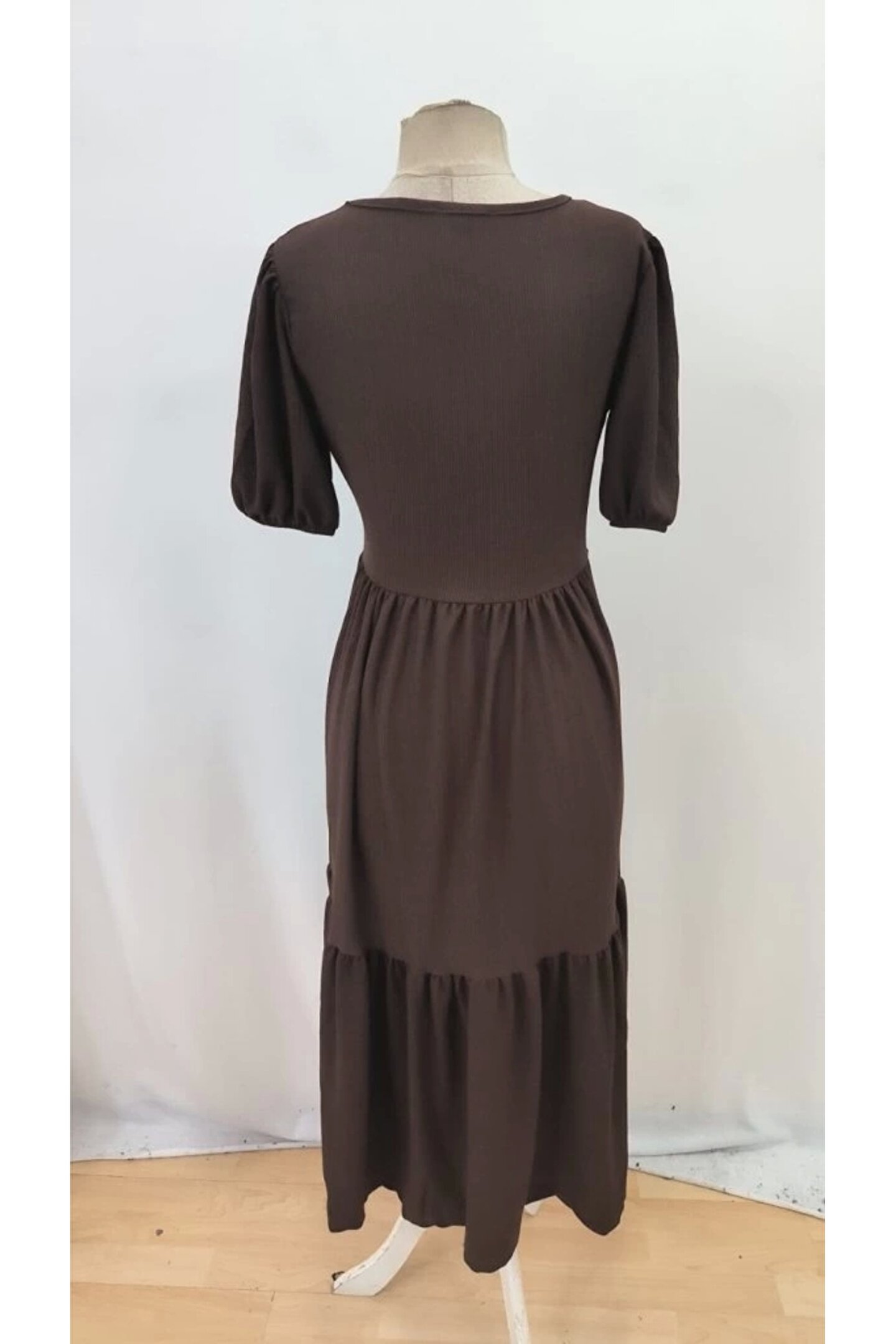Melenza Kadın Kısa Kollu Yakası Açık Katlı Bürümcük Balon Elbise