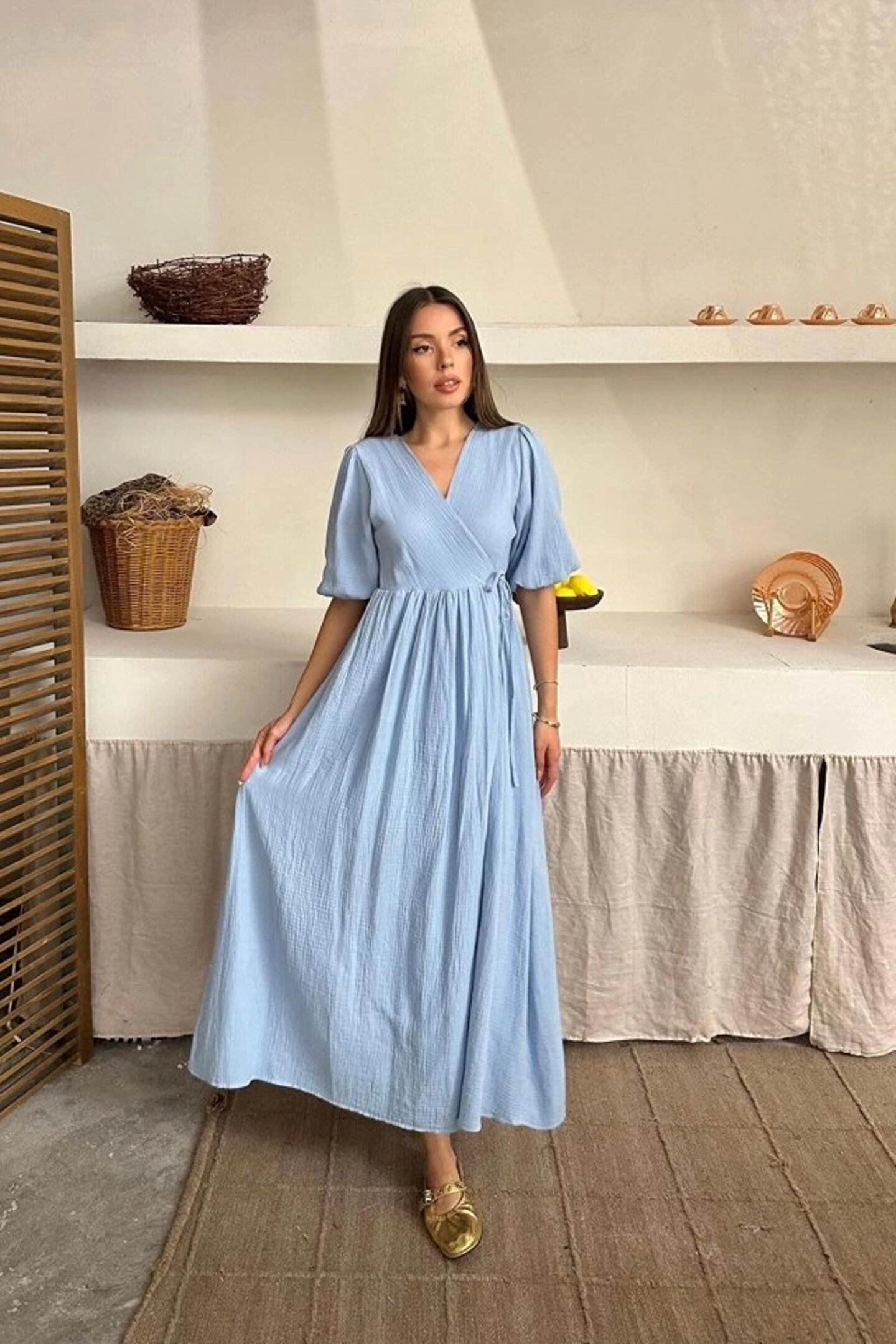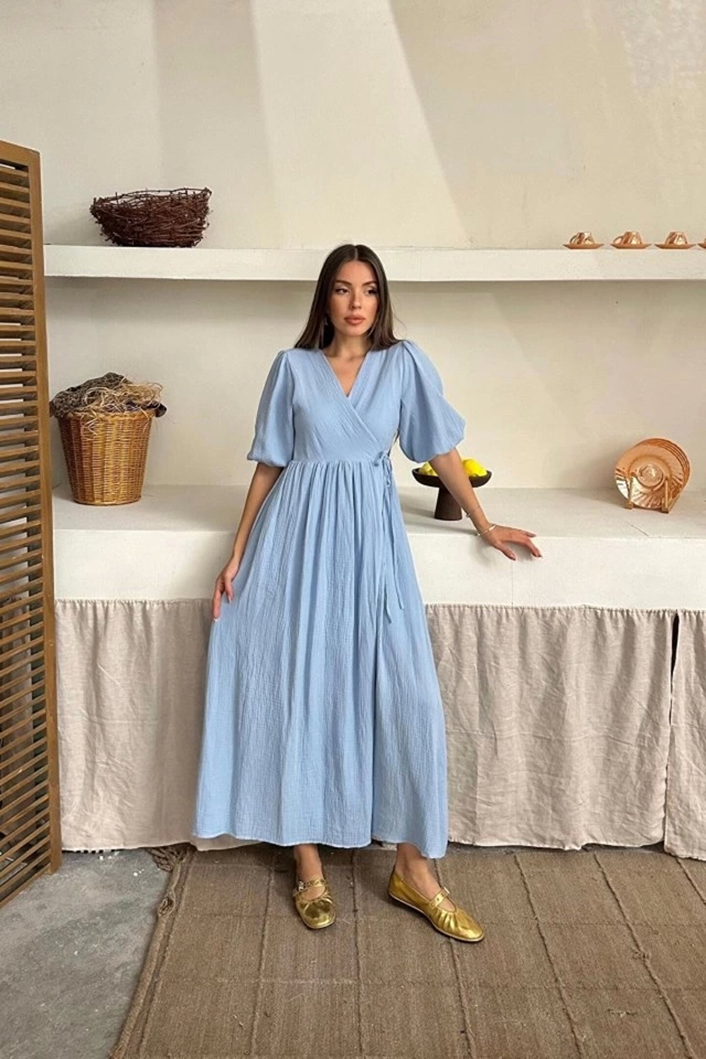 Melenza Modavera Bebe Mavi Müslin Uzun Elbise