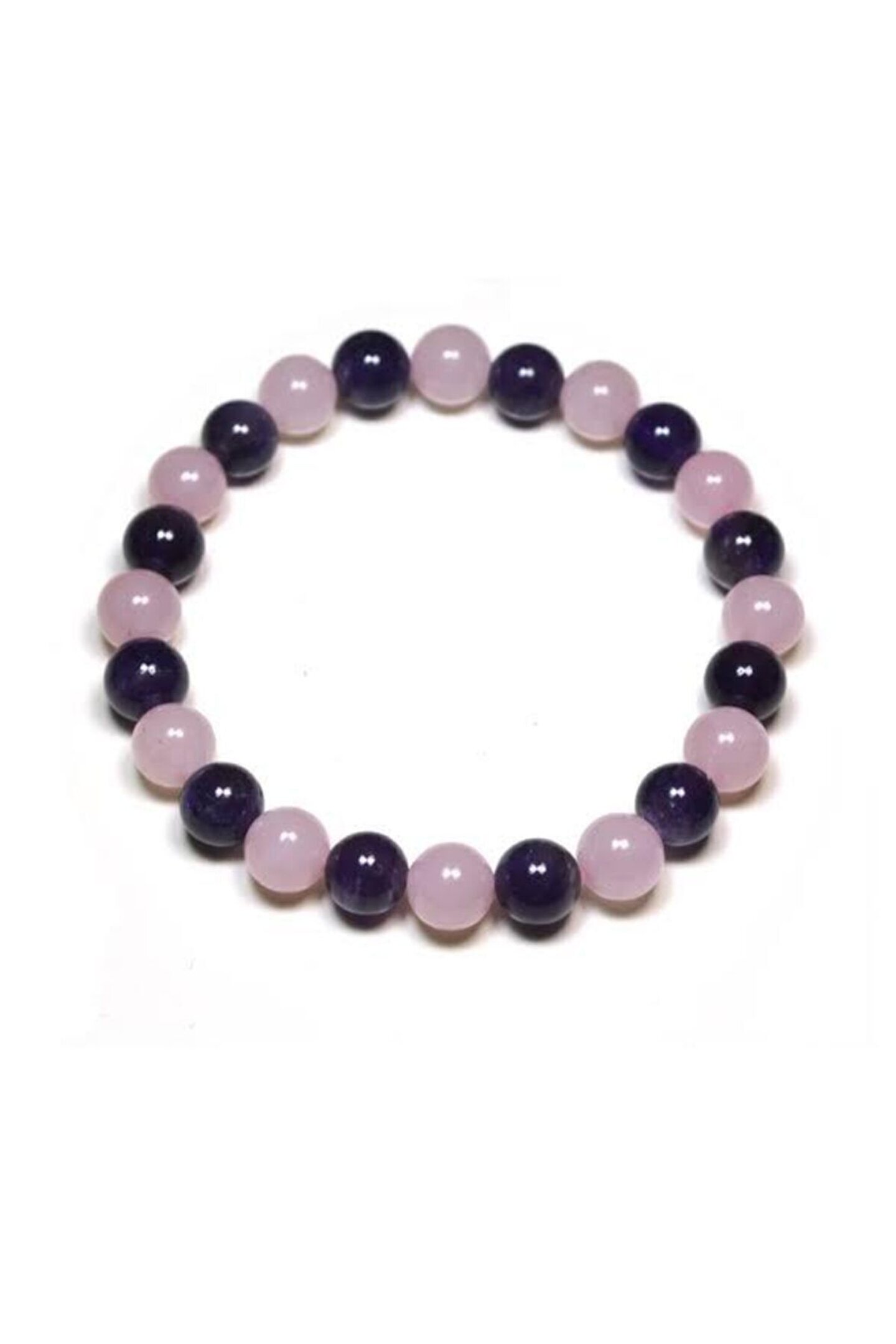 MELODY Pembe Kuvars Ve Ametist Doğal Taş Bileklik 8 Mm (aşk Bilekliği)