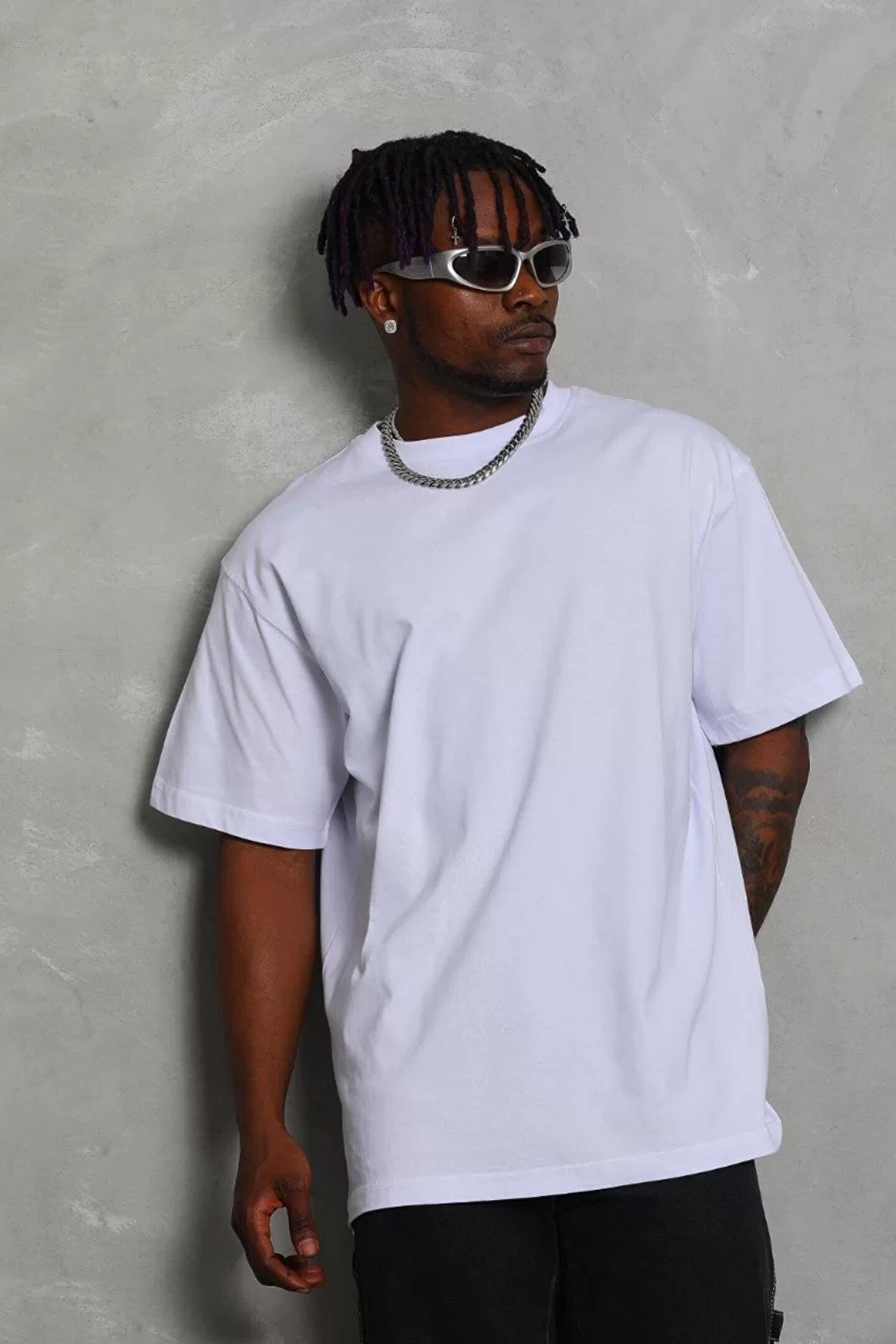Unisex Oversize Düz Bisiklet Yaka T-Shirt - Beyaz