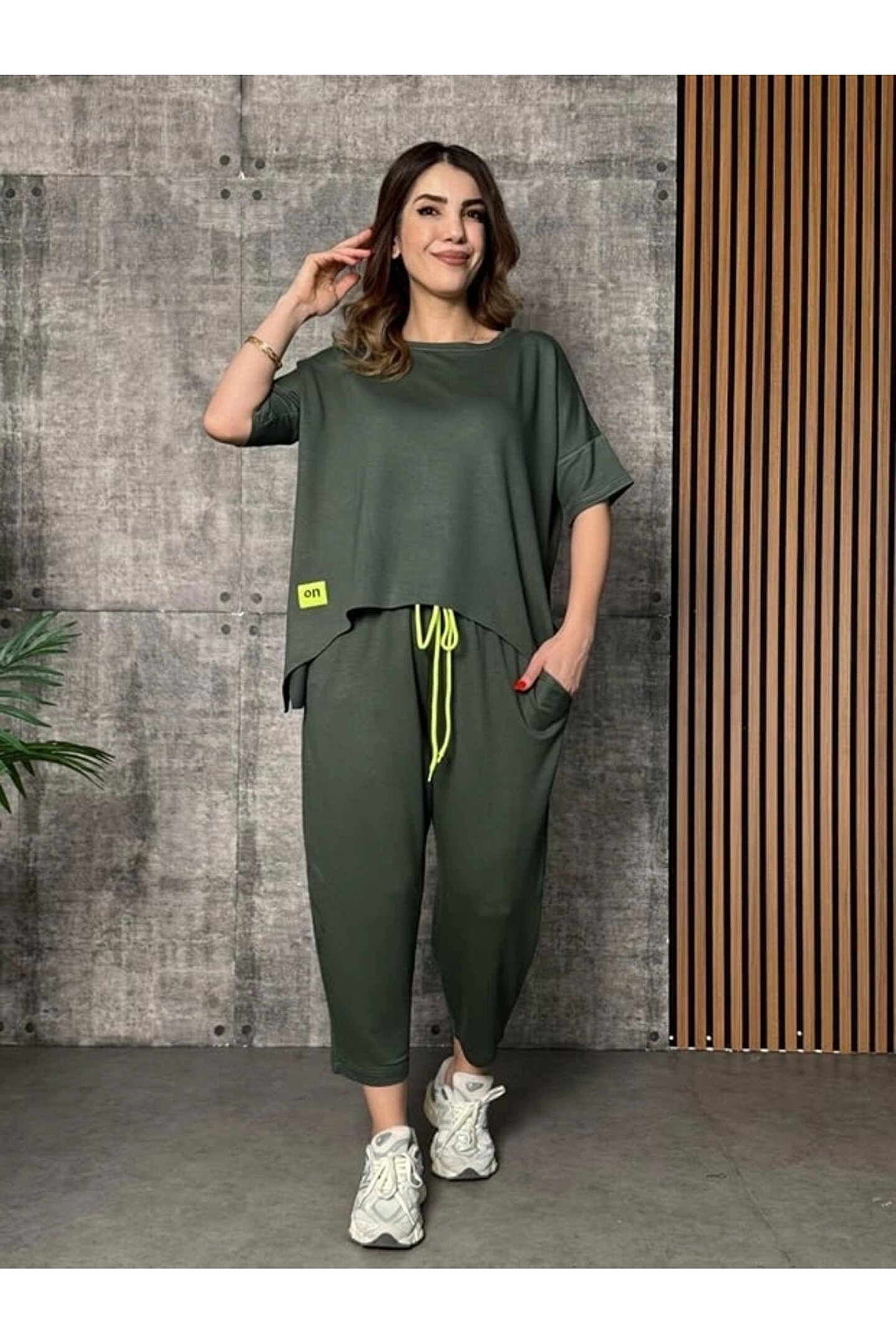 Kadın Kısa Kollu Bisiklet Yaka Viskon Iki Iplik Bluz Ve Pantolon Ikili Takım