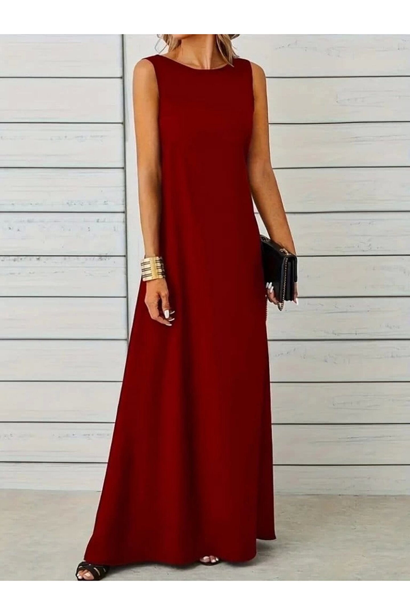 Kadın Kolsuz Kayık Yaka Maksi Janjan Krep Elbise