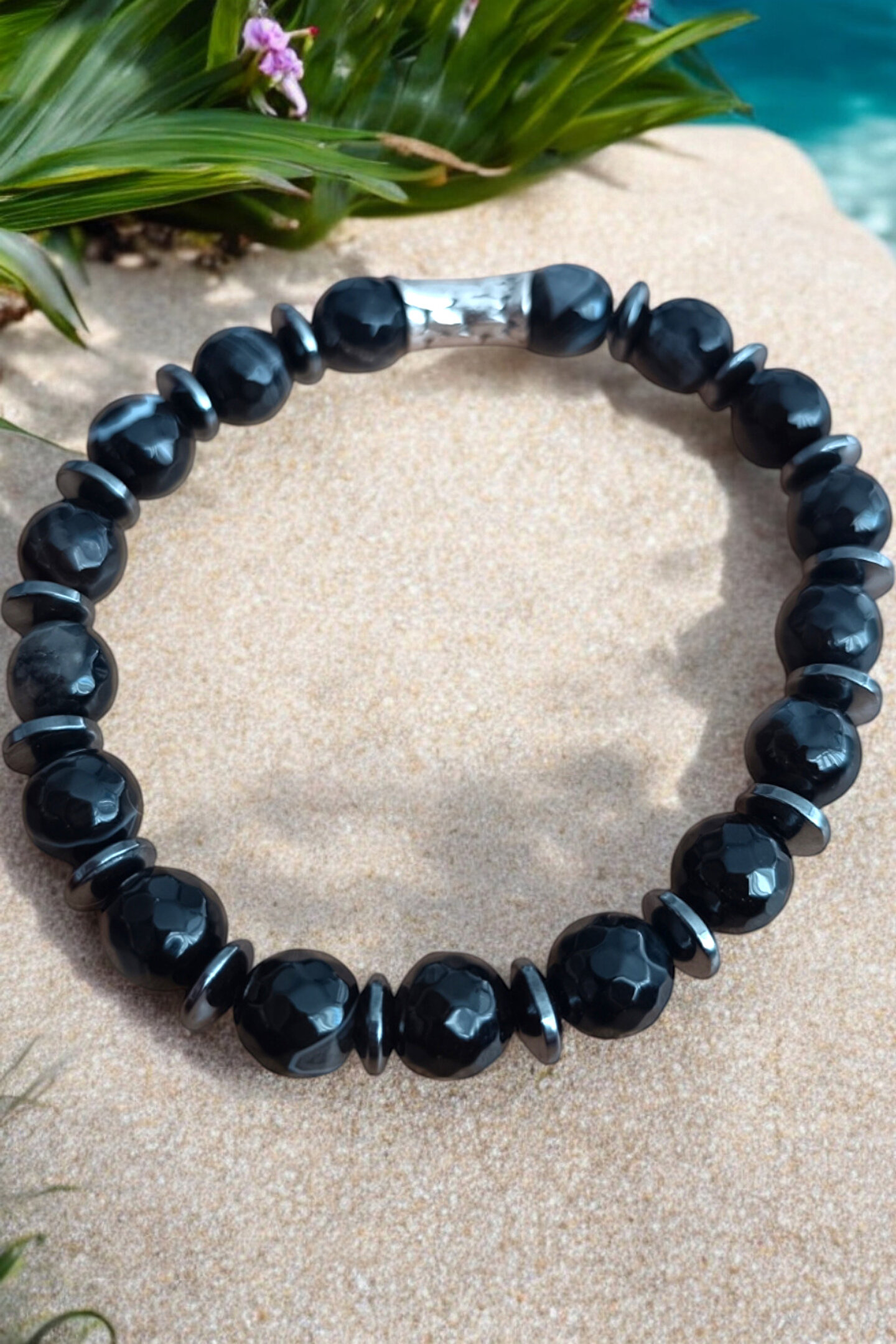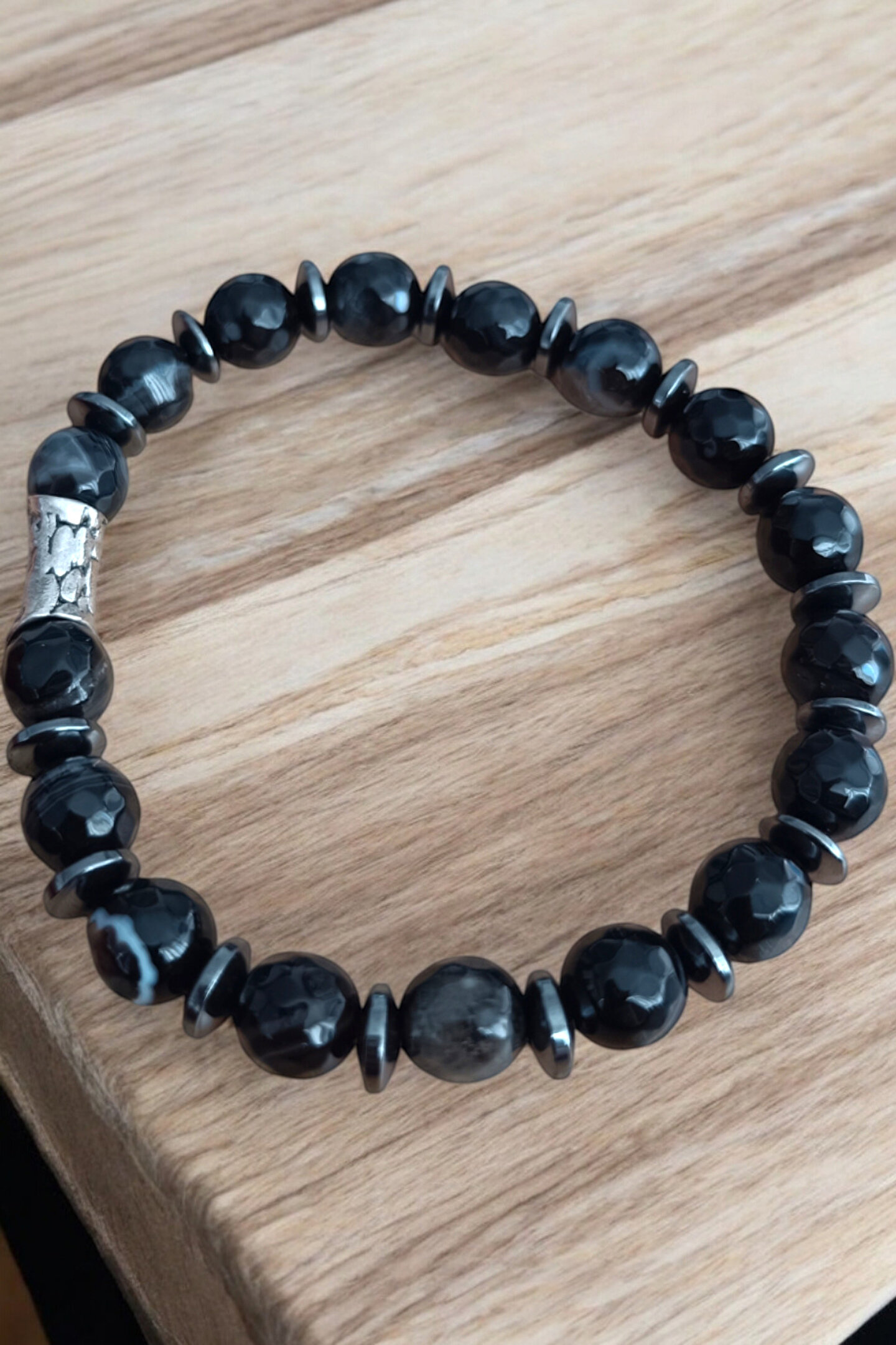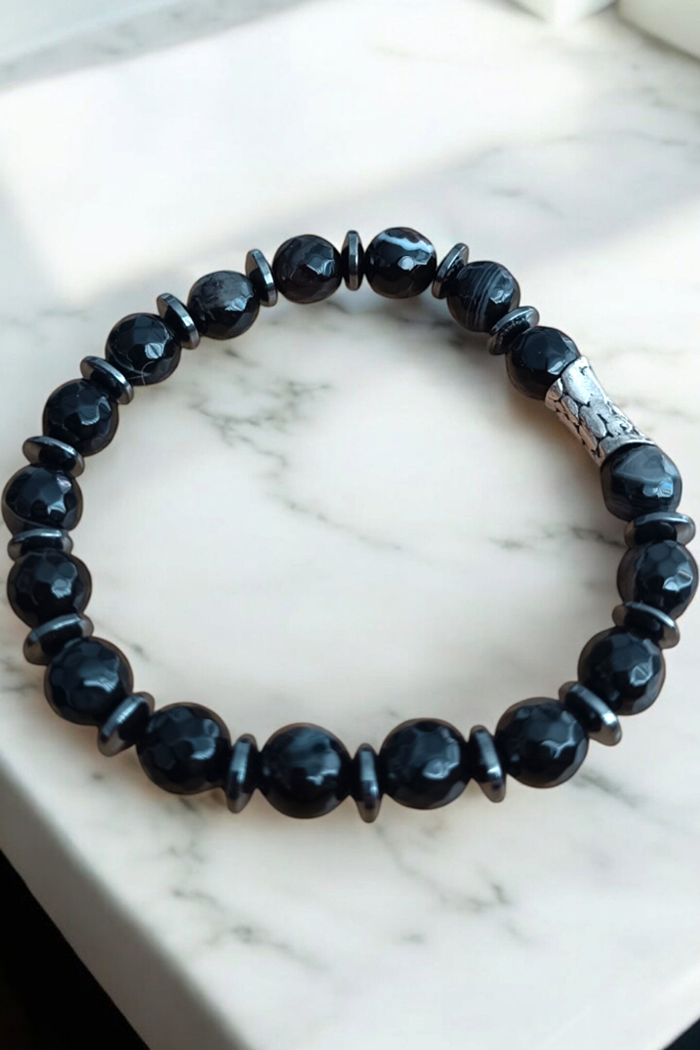 MGA DOĞAL TAŞ Akik Taşı Bileklik Siyah Akik Bileklik Faset Kesim 10 mm Akik Taşı Bileklik