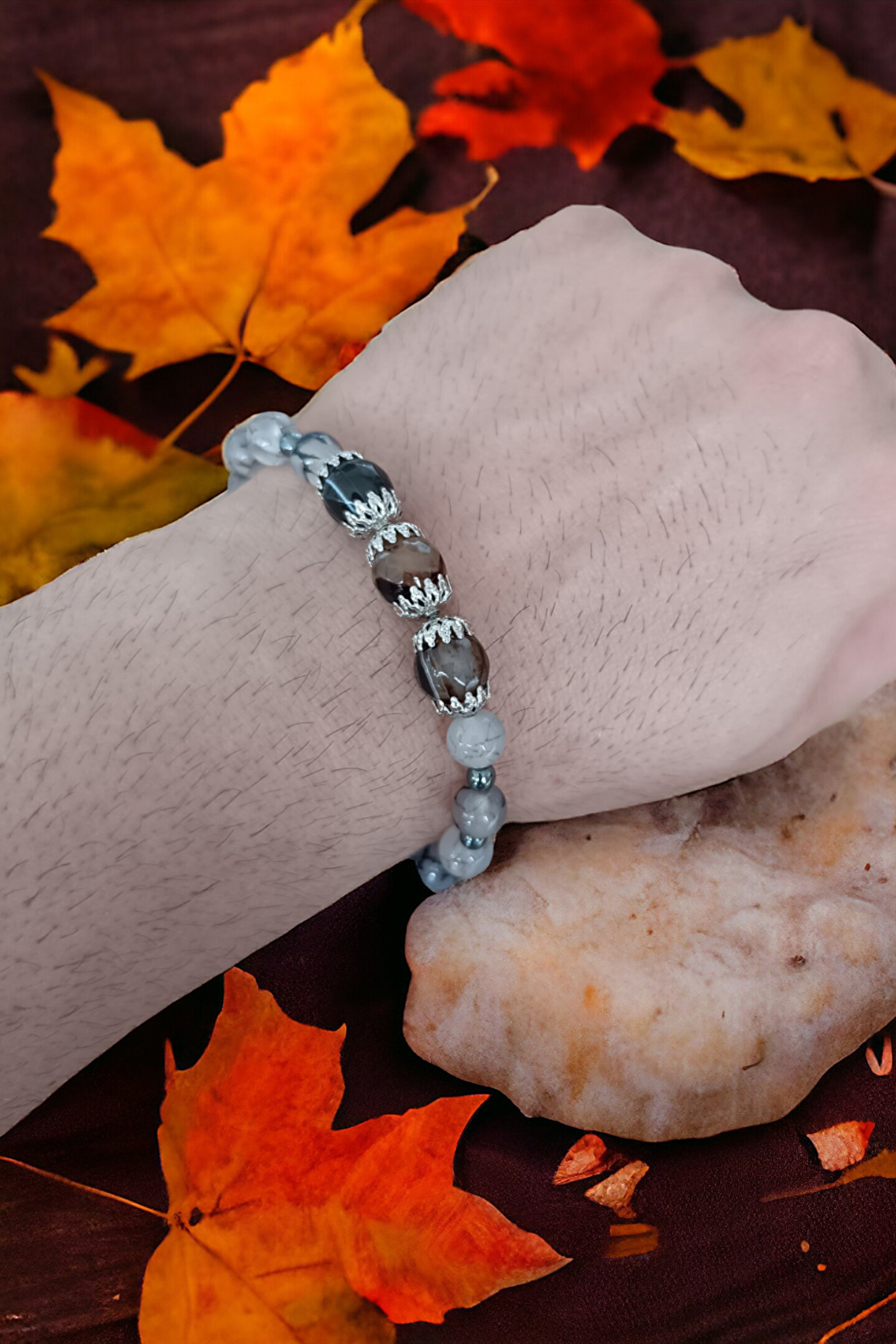 Doğal Taş Hematitli Boncuk Bileklik Unisex Kadın Erkek