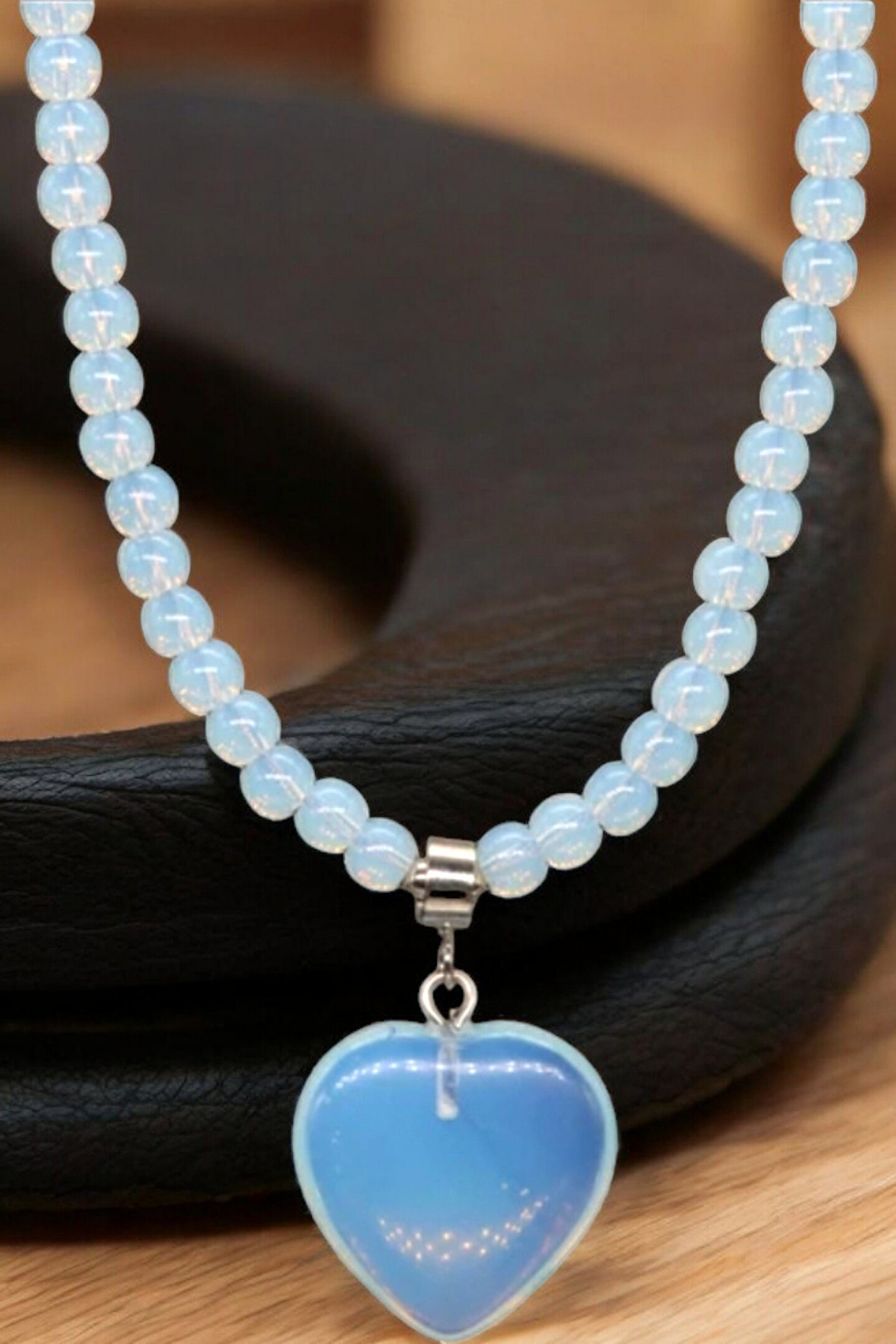 MGA DOĞAL TAŞ Ay Taşı Kolye Ay Taşı kolye Çelik Tel Çelik Uzatma Zinciri 4 mm Doğal Taş kalpli kolye