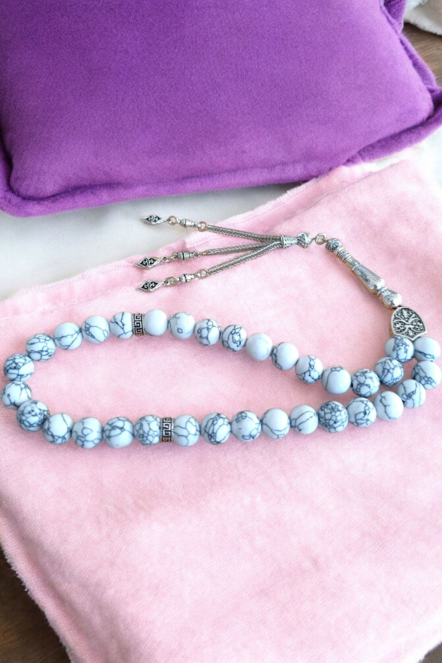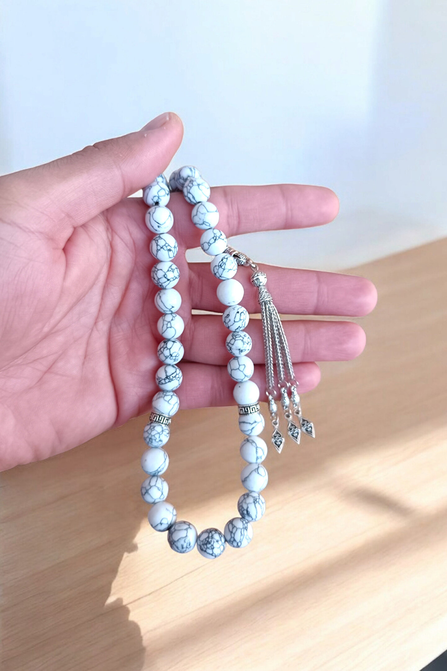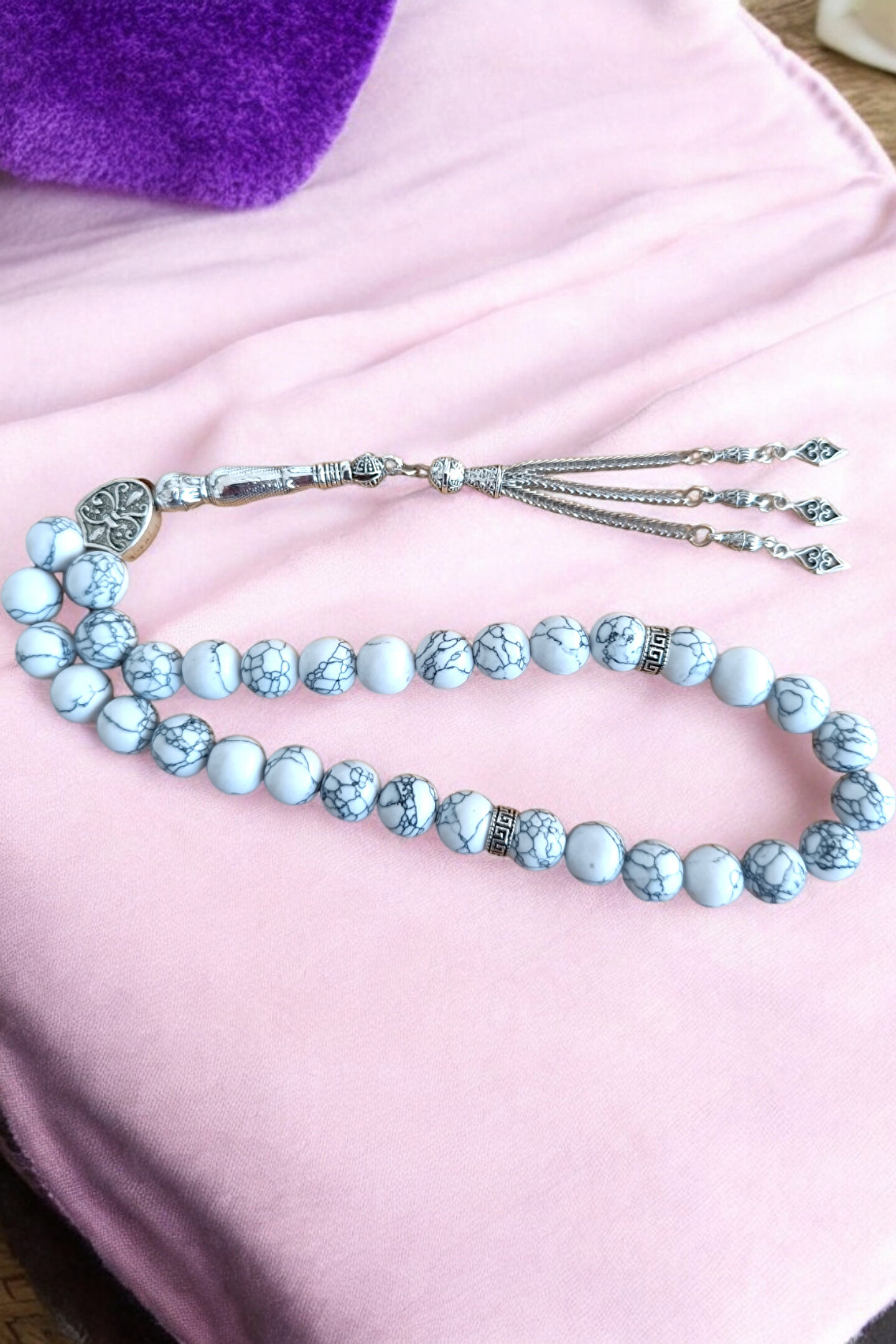 MGA DOĞAL TAŞ Beyaz Firuze Taşı Tesbih 33 Lük Tesbih Orijinal Doğal Taş Renk Atmaz 10 mm