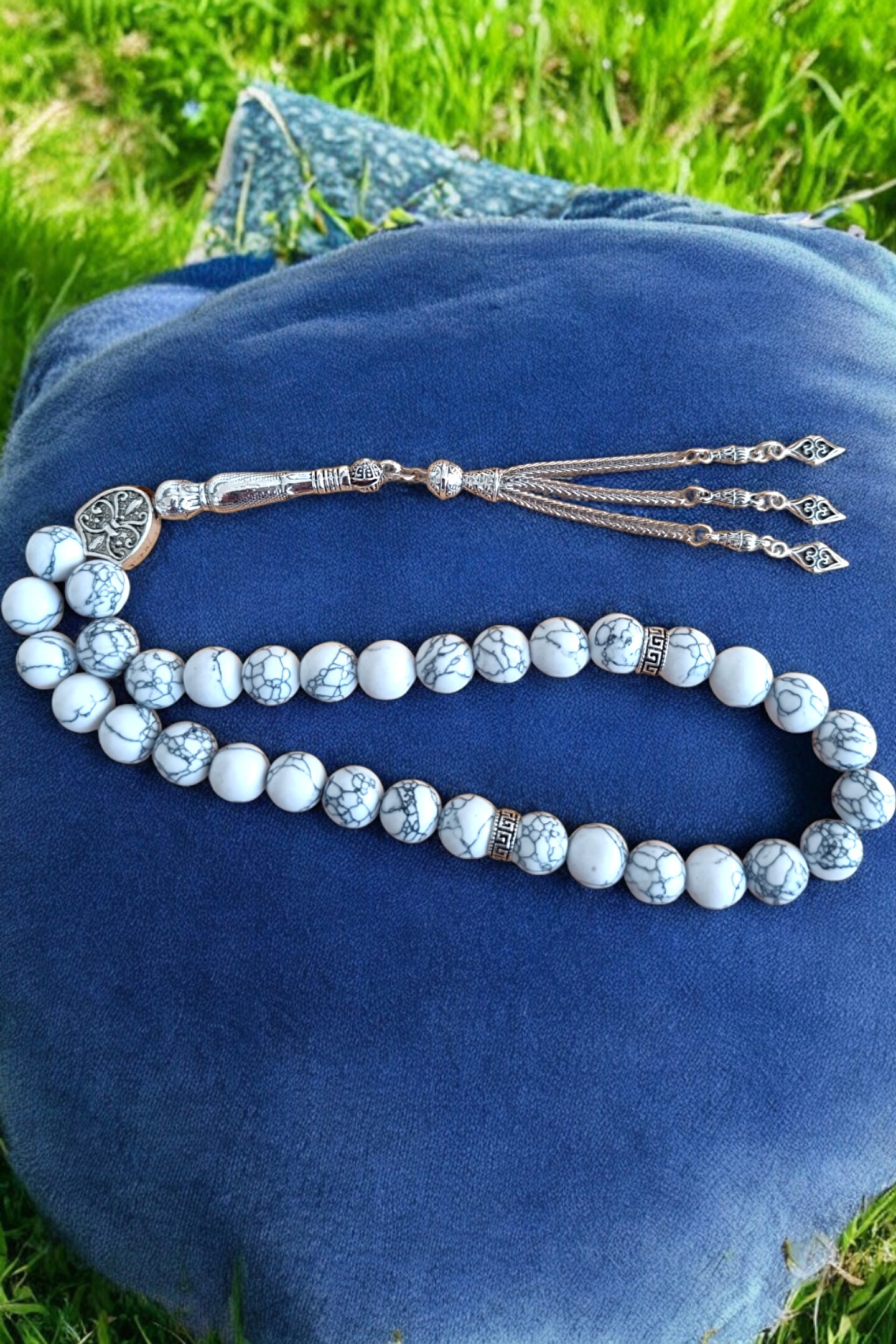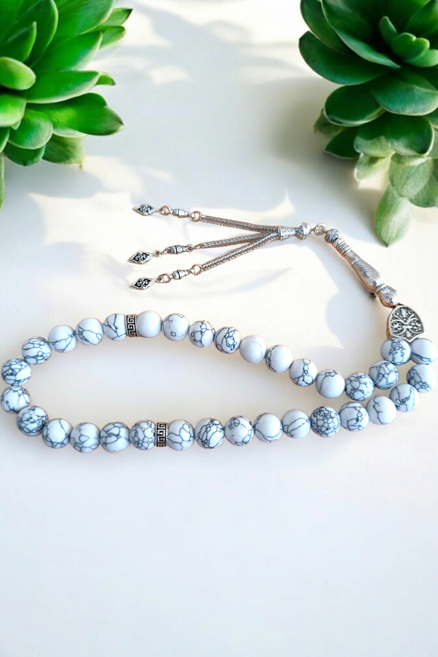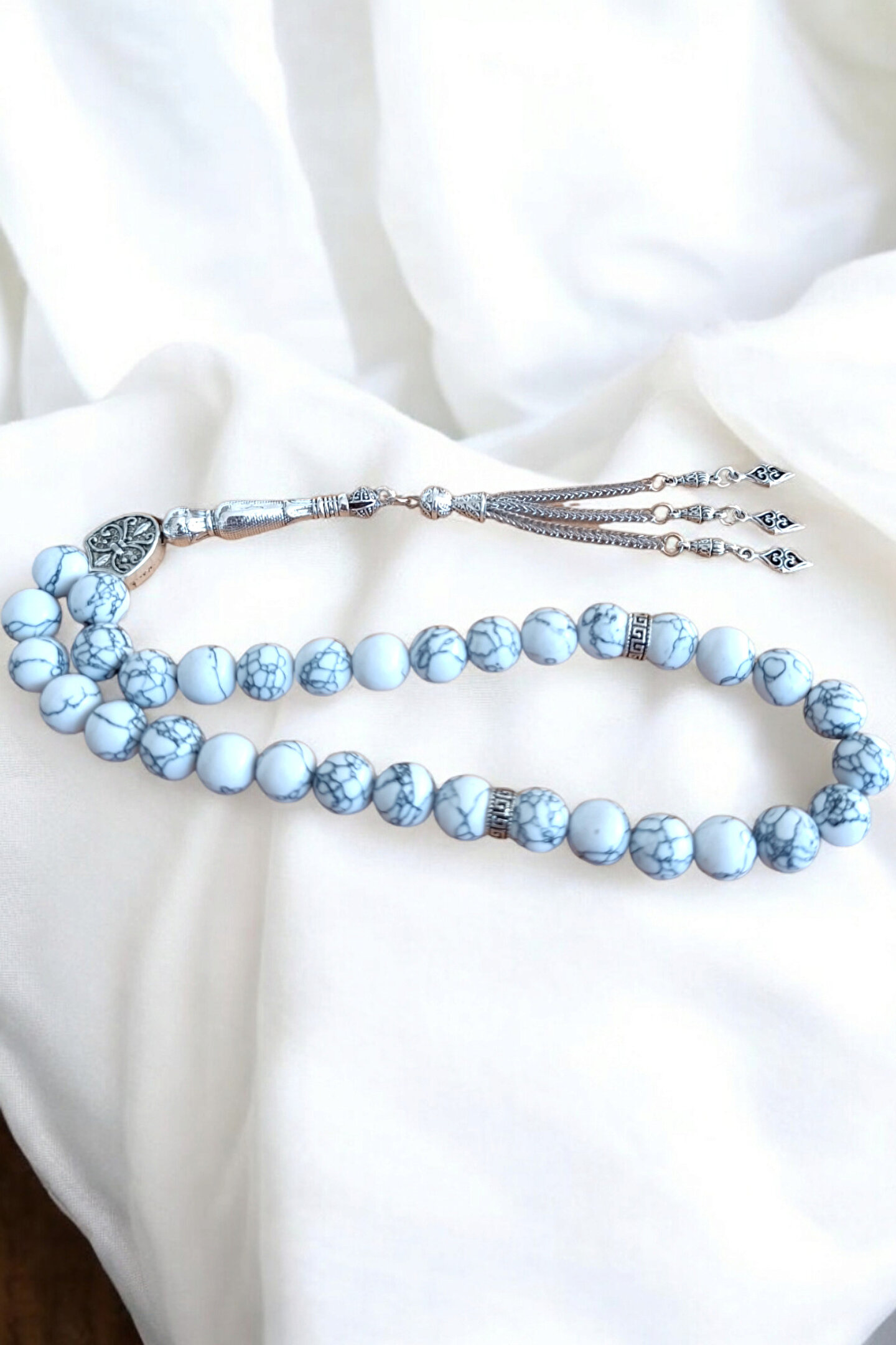 MGA DOĞAL TAŞ Beyaz Firuze Taşı Tesbih 33 Lük Tesbih Orijinal Doğal Taş Renk Atmaz 10 mm