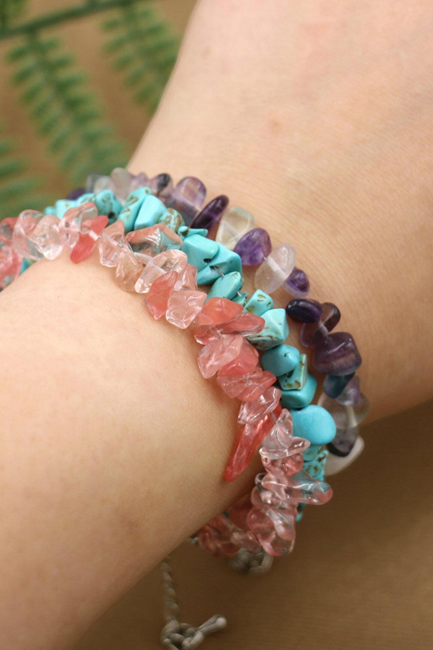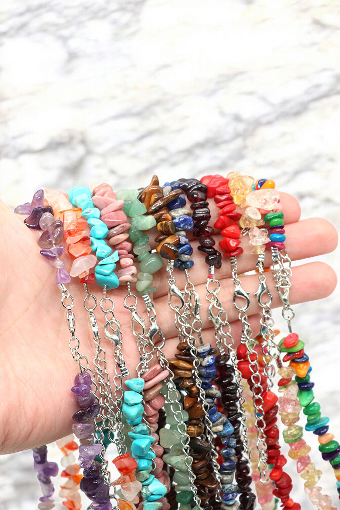 Doğal taş kullanımı ile öne çıkan bu kolye, kırıktaş, firuze taşı, turkuaz taşı ve gül kuvars taşı gibi değerli taşlarla süslenmiştir; Çelik tel ve çelik halka detayları ile modern ve şık bir görünüm sunar; Günlük kullanım için ideal olan bu kolye, zarif tasarımıyla dikkat çeker ve her türlü kıyafetle uyum sağlar; Çelik zincir yapısı sayesinde dayanıklılık ve uzun ömürlü kullanım vaat eder;