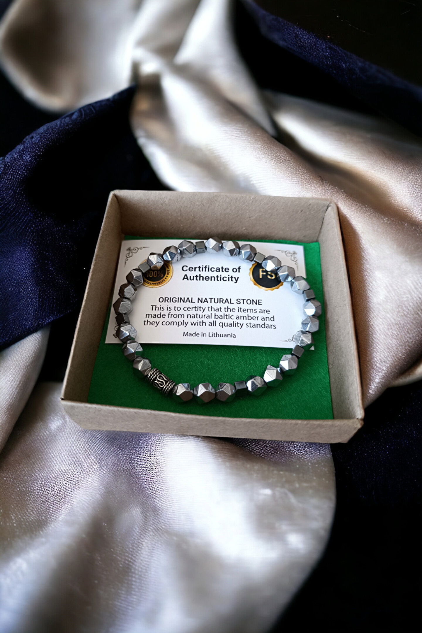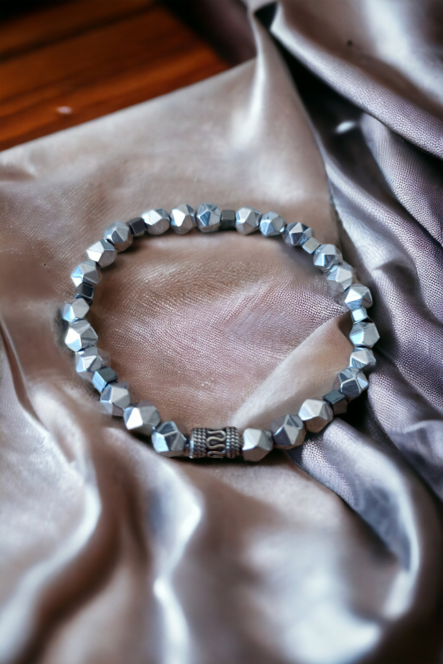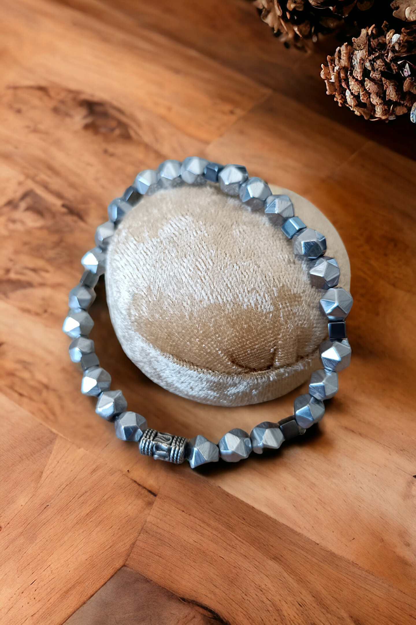 MGA DOĞAL TAŞ Hematit Bileklik Prizma Parlak Metal İnox Renk Kaliteli Doğal Taş Bileklik