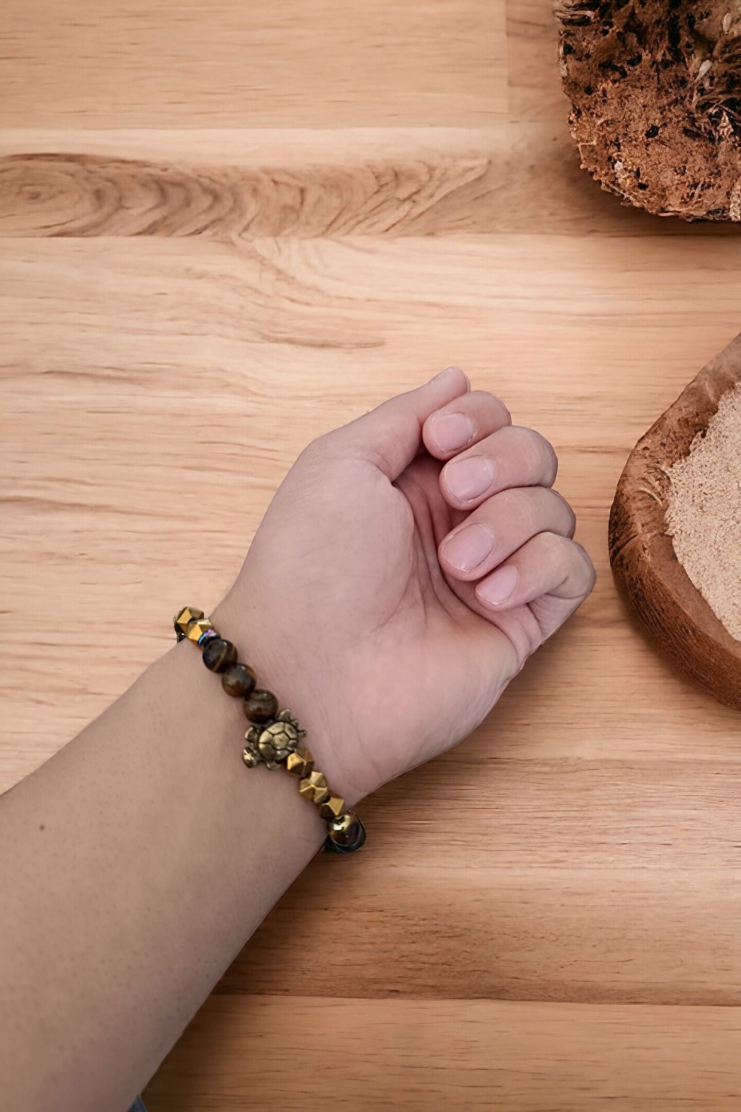 Tüm Taşlarımız Doğal Orijinal GerçekTaştır Piyasada Sentetik boncuk Taşlar ile lütfen Mukayese etmeyin ; Tüm ürünler orijinal Sertifika ilegönderilir Faturanız kesilir Sisteme işlenir ; Taşlar : Kaplan Gözü TaşıHematit Taşı ; Kesim: Normal kesim model + Disk kesim ; Taş boyutu : 8 mm - hematit disk 6 mm ; Taş sayısı : Bedenlere göre değişim olur ; Aparat: Metal Desenli ; Metal: Paslanmaz kaplama metallerdir ; Görüntü: Resim Ortalama 20-21 cm göreçekilmiştir ; Bilek yapınıza göre ayarlanacakmodelde taş + artı yada - eksi olabilir ; Bileklik ölçüsü: 16-17 cm - 18-19 cm -20-21 cm - 22-23 cm ; Sargı: 1 mm misina ipi Kalite: Doğaltaşlar ; Ürün içeriği: bileklik + sertifika +yedek misina ; Ambalajı: Seçenekler Mevcuttur ; Paket içeriği : 1 adet bileklik + 20-25cm uzunluğunda1 adet yedek misine ; İp: Esnek uzayıp kısalabilen misina herbileğe uyum sağlar bileği sıkmaz ; Ayrıca yedek misina gönderilmektedirbileklik bilek yapınıza göre yeniden tasarlayabilirsiniz ;