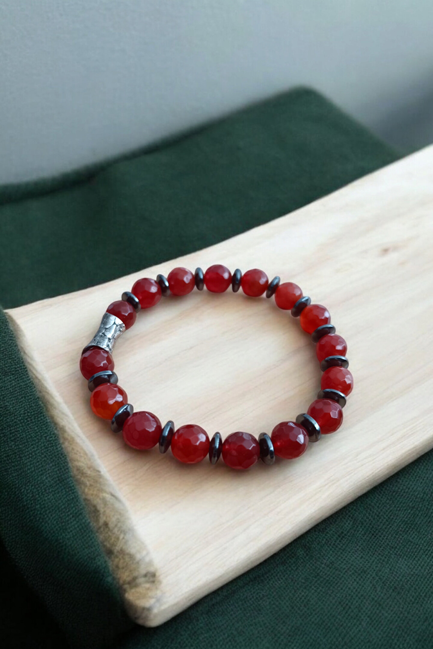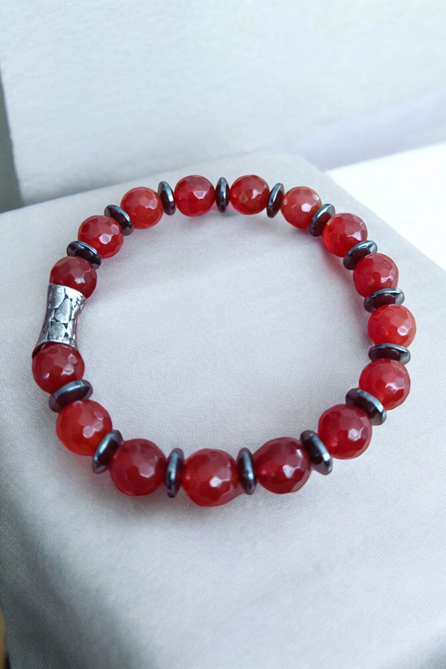 MGA DOĞAL TAŞ Kırmızı Akik Bileklik Faset Kesim Orijinal Gerçek Hakiki Akik Taşı Bileklik 10 mm