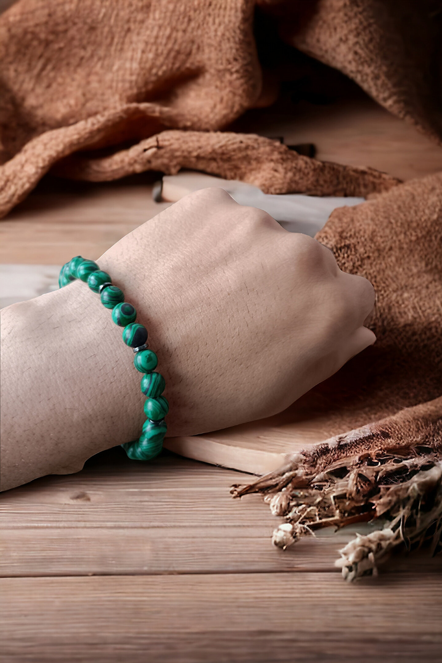 Tüm Taşlarımız Doğal Orijinal GerçekTaştır Piyasada Sentetik boncuk Taşlar ile lütfen Mukayese etmeyin ; Tüm ürünler orijinal Sertifika ilegönderilir Faturanız kesilir Sisteme işlenir ; Taşlar : Malahit Taşı + Hematit Taşı ; Kesim: Normal kesim model + Disk kesim ; Taş boyutu : 8 mm - hematit disk 4 mm ; Taş sayısı : Bedenlere göre değişim olur ; Aparat: Orijinal Doğal Malahit Taşı ; Metal: Paslanmaz kaplama metallerdir ; Görüntü: Resim Ortalama 20-21 cm göreçekilmiştir bilek yapınıza göre ; ayarlanacak modelde taş +artı yada - eksi olabilir Bileklik ölçüsü: 16-17 cm - 18-19 cm -20-21 cm - 22-23 cm ; Sargı: 1 mm misina ipi Kalite: Doğaltaşlar ; Ürün içeriği: bileklik + sertifika +yedek misina ; Ambalajı: Seçenekler Mevcuttur ; Paket içeriği : 1 adet bileklik + 20-25cm uzunluğunda1 adet yedek misine ; İp: Esnek uzayıp kısalabilen misina herbileğe uyum sağlar bileği sıkmaz ; Ayrıca yedek misina gönderilmektedirbileklik bilek yapınıza göre yeniden tasarlayabilirsiniz ;