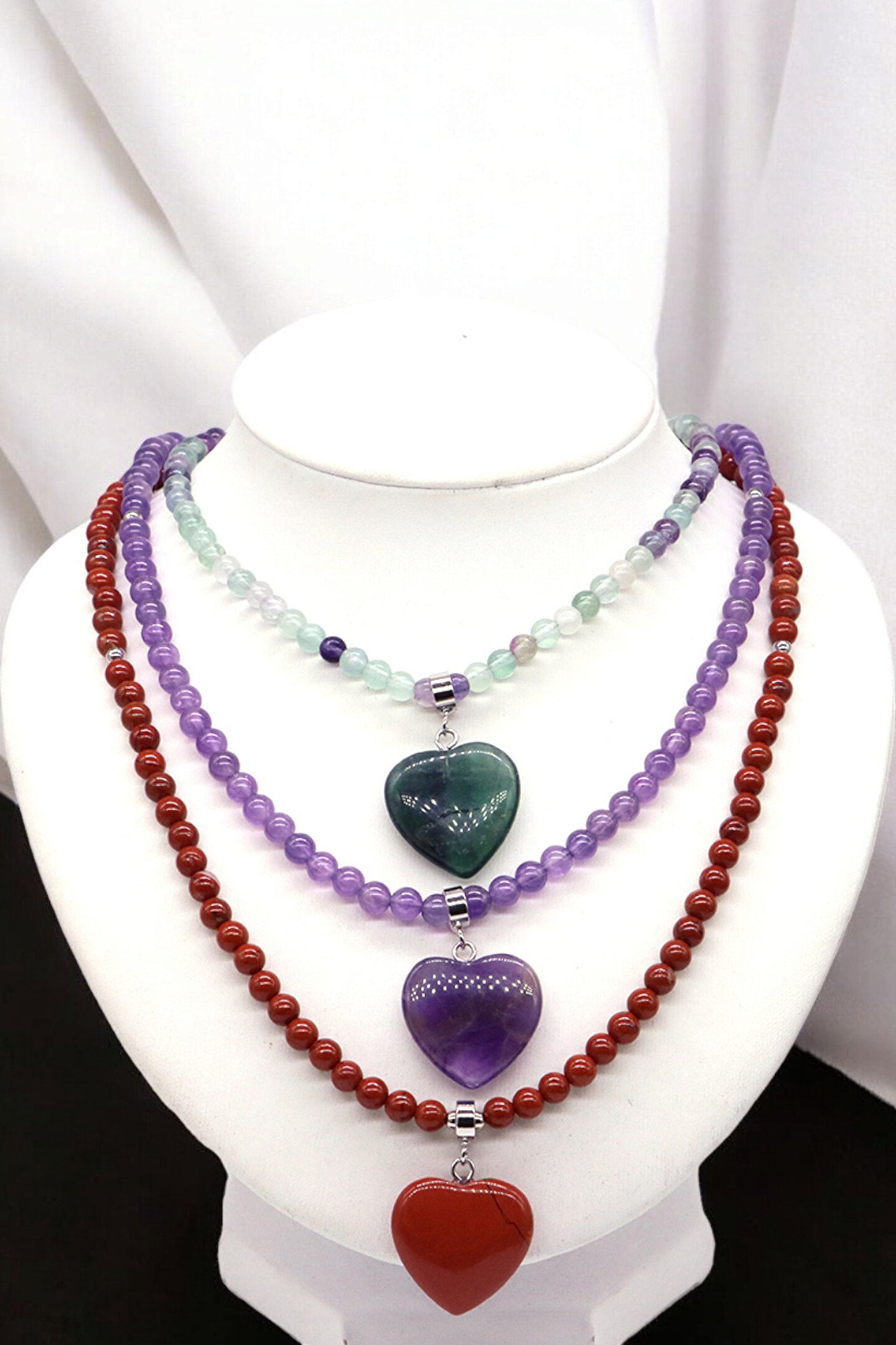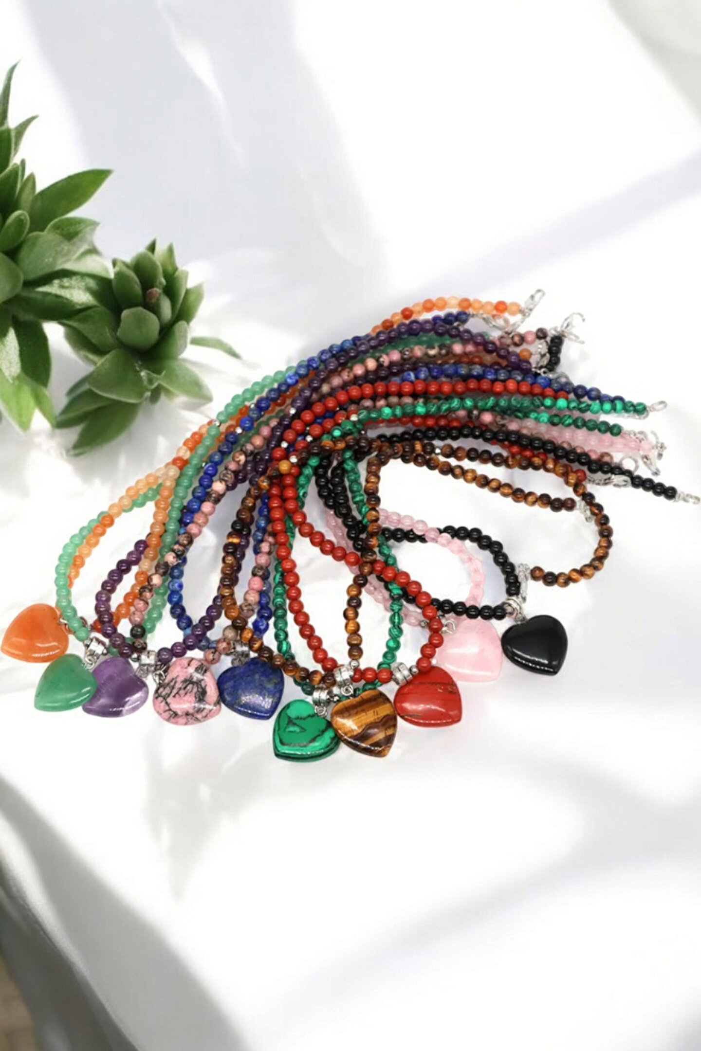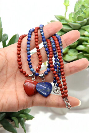 Doğal taşların zarif dokunuşuyla tasarlanmış, mercan taşı ve kaplan gözü taşı gibi özel taşlarla süslenmiş bu kolye, her kıyafetle uyum sağlayacak şıklığı sunar; 4 mm kalınlığındaki çelik tel zincir, dayanıklılığı ve uzun ömürlü kullanımı garanti ederken, doğal taşların eşsiz güzelliğiyle göz alıcı bir görünüm kazandırır; Kalp şeklindeki merca taşı detayı ile hem estetik hem de sembolik bir anlam taşıyan bu kolye, özel günlerde veya günlük kullanım için idealdir; Doğal taşların benzersiz renk ve desenleriyle öne çıkan bu kolye, her türden kıyafetle kolayca kombinlenebilir ve stilinizi tamamlar;