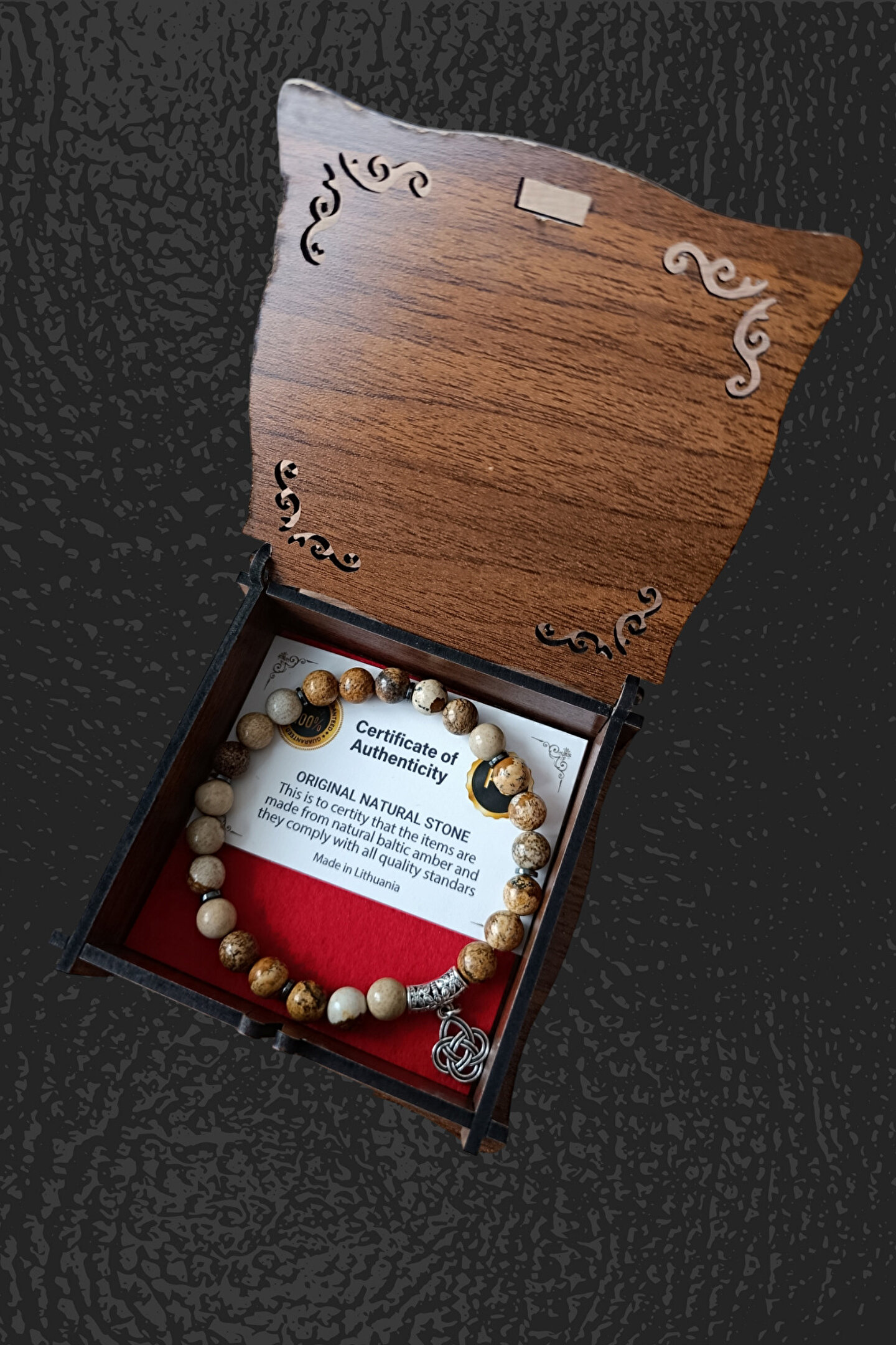Taşlar : Odun Jasper Taşı + TaşıHematit Taşı ; Kesim: Normal kesim model + Diskkesim ; Taş boyutu : 8 mm - hematit disk 4 mm ; Taş sayısı : Bedenlere göre değişim olur ; Aparat: Metal Desenli ; Metal: Paslanmaz kaplama metallerdir ; Görüntü: Resim Ortalama 20-21 cm göre çekilmiştirbilek yapınıza göre ; ayarlanacak modelde taş +artı yada - eksi olabilir Bileklik ölçüsü: 16-17 cm - 18-19 cm -20-21 cm - 22-23 cm ; Sargı: 1 mm misina ipi Kalite: Doğaltaşlar ; Ürün içeriği: bileklik + sertifika +yedek misina ; Ambalajı: Seçenekler Mevcuttur ; Paket içeriği : 1 adet bileklik + 20-25cm uzunluğunda1 adet yedek misine ; İp: Esnek uzayıp kısalabilen misina herbileğe uyum sağlar bileği sıkmaz ; Ayrıca yedek misina gönderilmektedirbileklik bilek yapınıza göre yeniden tasarlayabilirsiniz ;