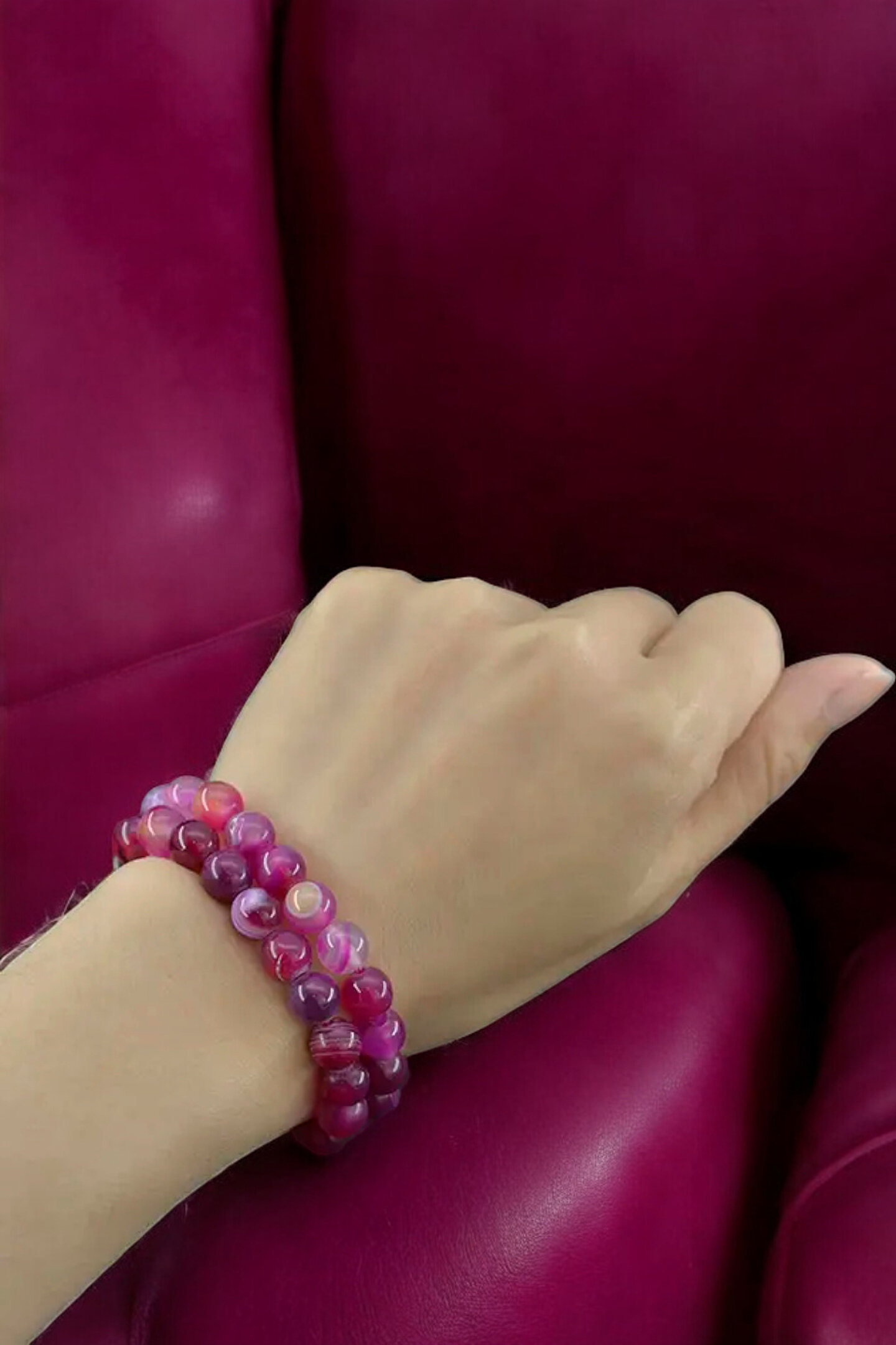 - Pembe akik taşı ile tasarlanmış, her bileğe uyum sağlayan esnek misina yapısı sayesinde rahat bir kullanım sunar; - Doğal taş bileklik, şıklığı ve zarafeti bir arada arayanlar için ideal bir aksesuardır; - Akik taşı bileklik, benzersiz desenleriyle dikkat çeker ve her türlü kıyafetle kolayca kombinlenebilir; - Esnek yapısı sayesinde farklı bilek ölçülerine uyum sağlar ve konforlu bir deneyim sunar;