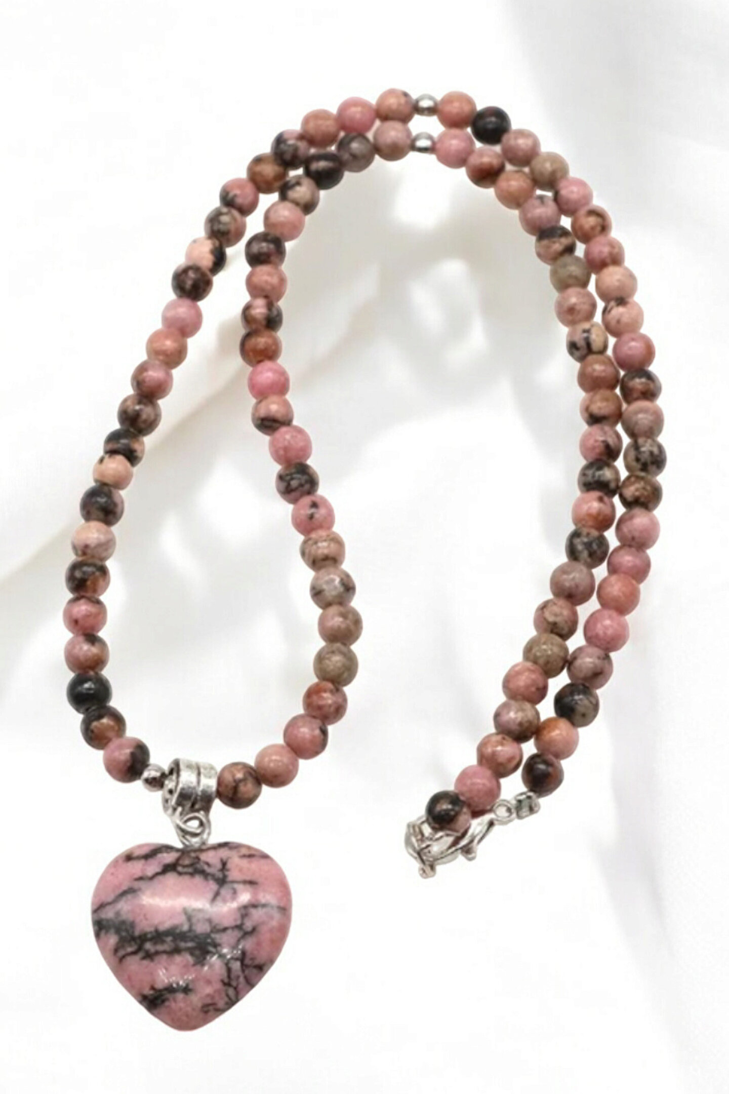 Doğal taşların eşsiz güzelliğini yansıtan bu kolye, her kıyafetle uyum sağlayacak zarif bir aksesuar seçeneği sunar; Rodonit taşı, malahit taşı ve kaplan gözü taşı gibi farklı doğal taşların birleşimiyle zenginleştirilmiş tasarım, benzersiz bir görünüm kazandırır; 4 mm kalınlığındaki çelik tel zincir, dayanıklılığı ve şık duruşuyla dikkat çekerken, uzatma özelliği sayesinde farklı boy ve uzunluklarda kullanılabilir; Kalpli kolye detayı ile hem estetik hem de sembolik bir anlam taşır; sevgiyi ve şefkati temsil eder;