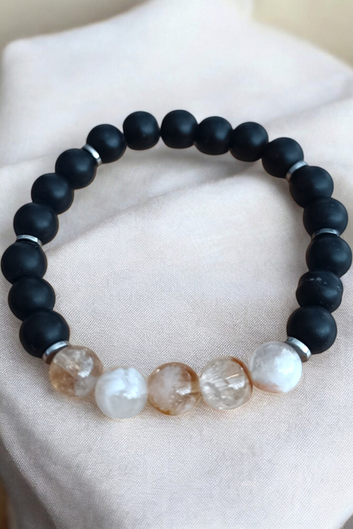 - Sitrin, Oniks ve Hematit taşlarından oluşan bileklik, her bileğe uyum sağlayan esnek misina ile tasarlanmıştır.; - Sertifikalı ürün olarak, gerçek hakiki doğal taşlardan üretilmiştir ve uzun süreli kullanım için idealdir.; - Renk atma, kararma veya solma yapmayan yapısıyla dikkat çeker; böylece bileğinizdeki renkli güzelliği uzun süre korur.; - Yetişkinler için uygun olan bu bileklik, hem kadınlar hem de erkekler tarafından rahatlıkla tercih edilebilir.; - Paket kutusu ile gönderilen bu bileklik, şık bir hediye seçeneği olarak da değerlendirilebilir.; Sitrin Taşı Mat Oniks Taşı Hematit Taşı Bileklik Esnek Misina Her Bileğe Uygun Doğal Taş Bileklik Sitrin ve Mat Oniks Taşı Bileklik Renk Atmaz Solmaz Kararmaz Paslanmaz Orijinal Doğal Gerçek Taştır Orijinal Doğal Gerçek Taştır Taş: Sitrin Taşı Mat Oniks Taşı Hematit Taşı Taş boyutu : 8 mm Taş sayısı : Bedenlere göre değişim olur Kesim: Normal kesim model Metal: Sade Model Görüntü: Resim Ortalama 20-21 cm göre çekilmiştir bilek yapınıza göre ayarlanacak modelde taş + artı yada - eksi olabilir Bileklik ölçüsü: 15-16 cm - 17-18 cm -19-20 cm - 21-22 cm Sargı: 1 mm misina ipi Kalite: Doğal taşlar Ürün içeriği: bileklik + sertifika +yedek misina Ambalajı: Asetat Kutu Paket içeriği : 1 adet bileklik + 20-25cm uzunluğunda1 adet yedek misine İp: Esnek uzayıp kısalabilen misina her bileğe uyum sağlar bileği sıkmaz Ayrıca yedek misina gönderilmektedir bileklik bilek yapınıza göre yeniden tasarlayabilirsiniz