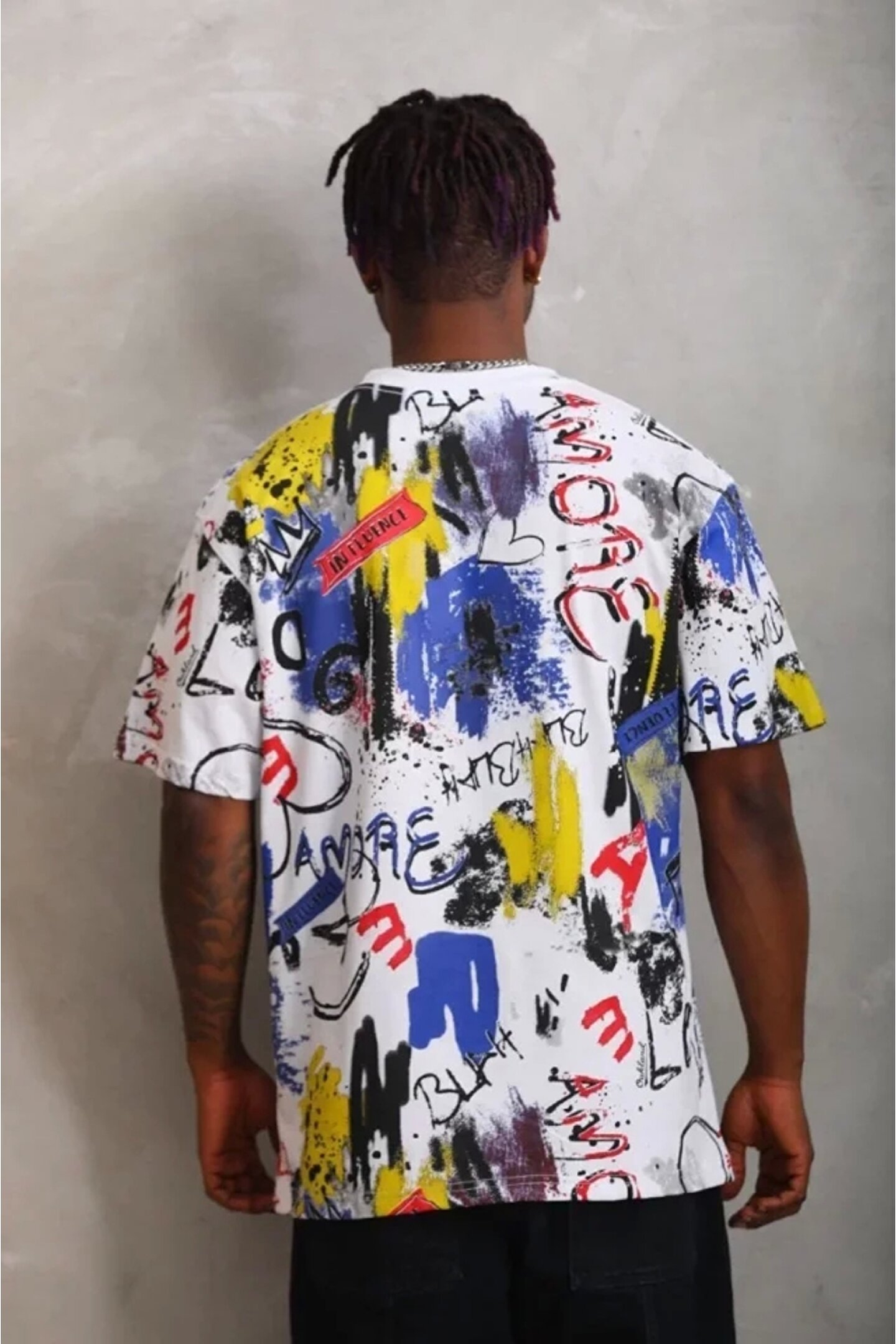 MHT STORE Unisex Oversize Baskılı Bisiklet Yaka T-Shirt - Beyaz