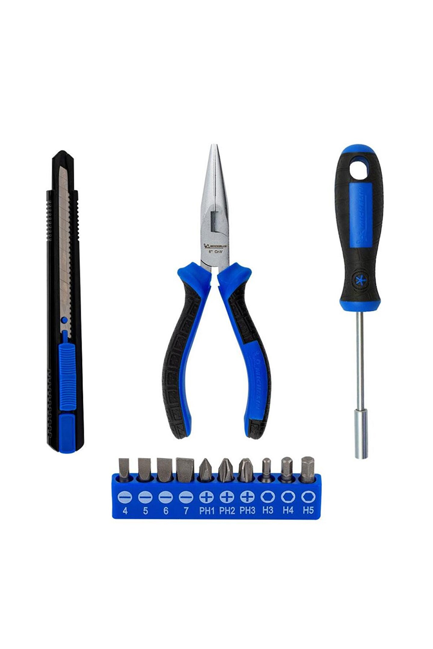 • Michelin MC33320 13 Parça CR-V Kargaburnu + Maket Bıçağı Bits Tornavida Seti • Mobilya montajında, genel tamirat ve tadilat işleri ile Mekanik veya elektrikli aletlerin, elektronik aletlerin bakım ve onarımında kullanılabilmesi için paslanmaya ve aşınmaya dayanıklı Krom Vanadium bits vidalama uçlarına sahiptir.; • Geliştirilmiş dayanıklılık, paslanma direnci ve korozyon önleyici özellik için ısıl işlem görmüş CR-V çelikten yapılmış 13 Parça bits tornavida, kargaburnu ve maket bıçağı seti.; • Rahat kullanım için kaymayan, kolay kavranan tutma sapı sayesinde konforlu kullanım imkânı.; • Üst düzey kauçuk kaplama sap tasarımı kaymayı önler, el yorgunluğunu azaltır.; • 10 Parça Bits Tornavida seti, Kargaburnu ve Maket Bıçağı içeren genel maksatlı tamir, montaj bakım setinden oluşmaktadır.; • Şeffaf taşıma çantası ile alet ve aksesuarları temiz ve güvenli bir şekilde saklama imkânı.; • İÇERİK: • 1 Adet 160mm Kargaburnu • 1 Adet 9mm Maket Bıçağı • SL4 / SL5 / SL6 / SL7mm Düz Bits Vidalama Uçları • PH1 / PH2 / PH3 Yıldız Bits Vidalama Uçları • H3 / H4 / H5mm Hex Bits Vidalama Uçları • 210mm Manyetik Bits Uçlu Tornavida • Şeffaf PVC taşıma çantası