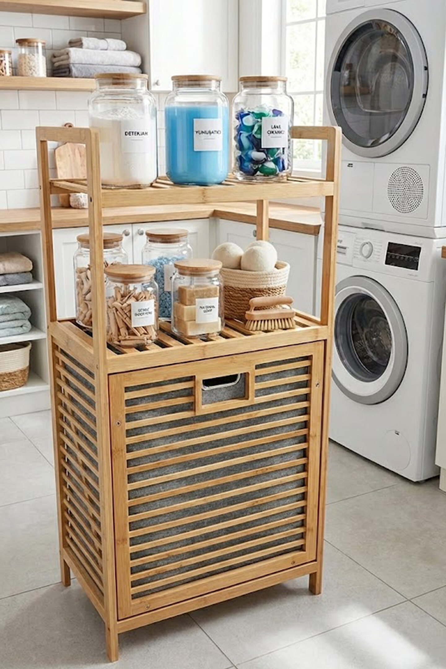 Mien Bambu Dikey Raflı Çamaşır Sepeti – 40×30×95 cm | Şık ve Düzenli DepolamaDoğal bambu malzemeden üretilen Mien Bambu Dikey Raflı Çamaşır Sepeti, hem çamaşır depolama hem de ek raf alanı sunarak banyonuzda veya çamaşır odanızda estetik ve pratik bir kullanım sağlar.; Kompakt tasarımı sayesinde dar alanlarda bile maksimum düzenleme imkanı sunar.; Ürün İçeriği:1 adet bambu dikey çamaşır sepeti (40×30×95 cm)Üst bölümde raf alanıÇıkarılabilir kumaş çamaşır torbasıÜrün Özellikleri:Malzeme: Doğal bambu gövde, dayanıklı kumaş sepetDikey ve kompakt tasarım ile alan tasarrufu sağlarÜst raf, deterjan, yumuşatıcı veya banyo aksesuarları için ekstra depolama alanı sunarHava alan kumaş torba, kötü koku oluşumunu engellerŞık ve doğal görünüm, her dekorasyonla uyum sağlarNeden Tercih Etmelisiniz?Dar alanlarda bile düzenli kullanım imkanıDoğal bambu estetiği ile banyo dekorunu tamamlarHem depolama hem de çamaşır toplama işlevini bir arada sunarSağlam ve uzun ömürlü yapıAnahtar Kelimeler:bambu çamaşır sepeti, dikey çamaşır sepeti, raflı çamaşır sepeti, 40x30x95 çamaşır sepeti, doğal bambu çamaşır düzenleyici, banyo çamaşır sepeti, kumaş torbalı çamaşır sepeti, dekoratif çamaşır sepeti