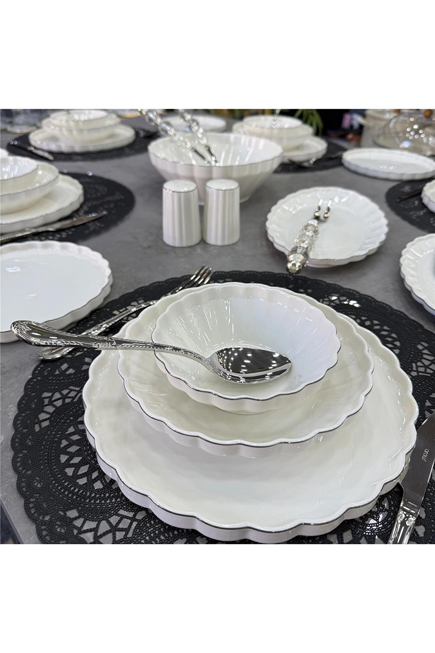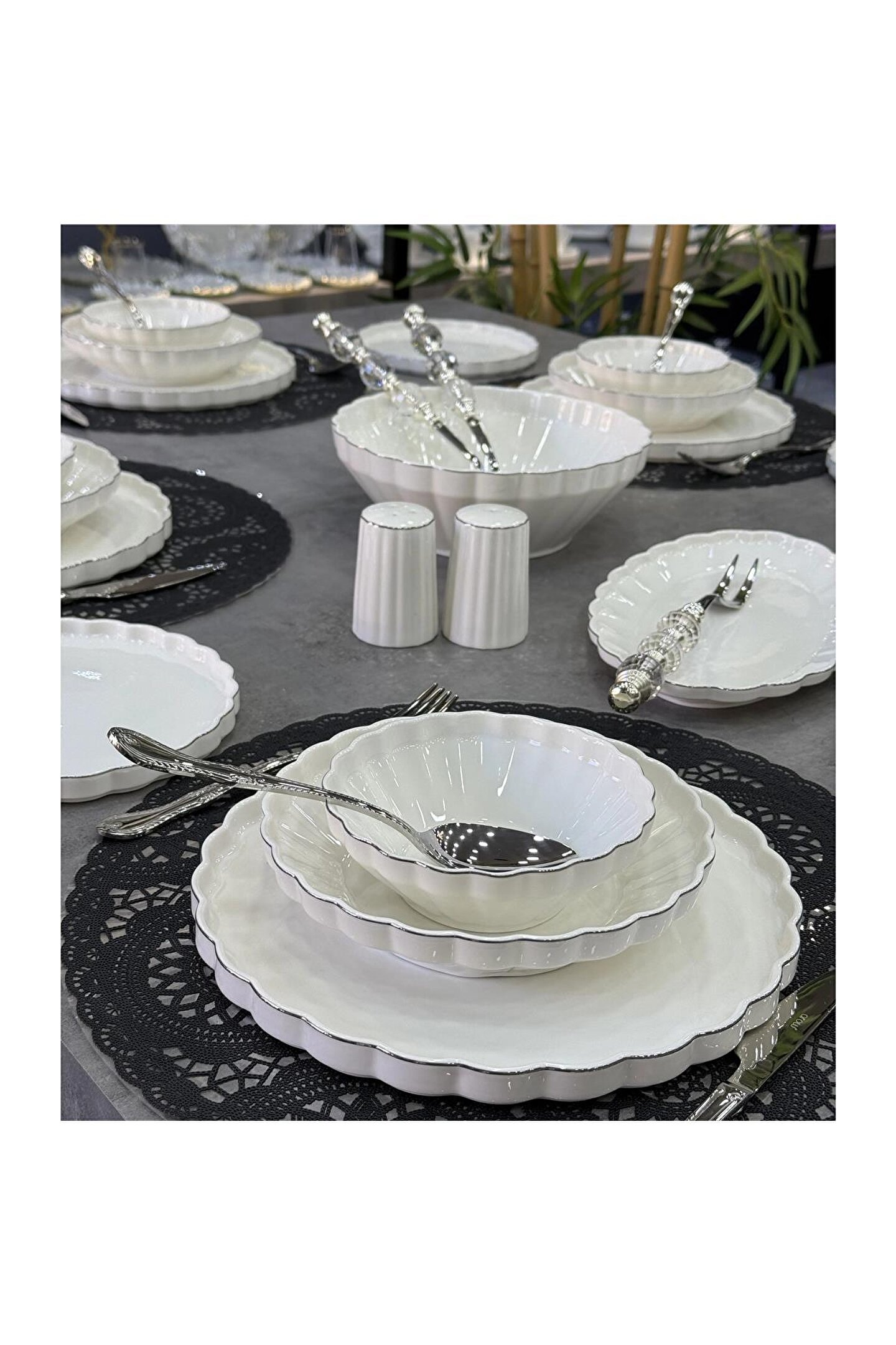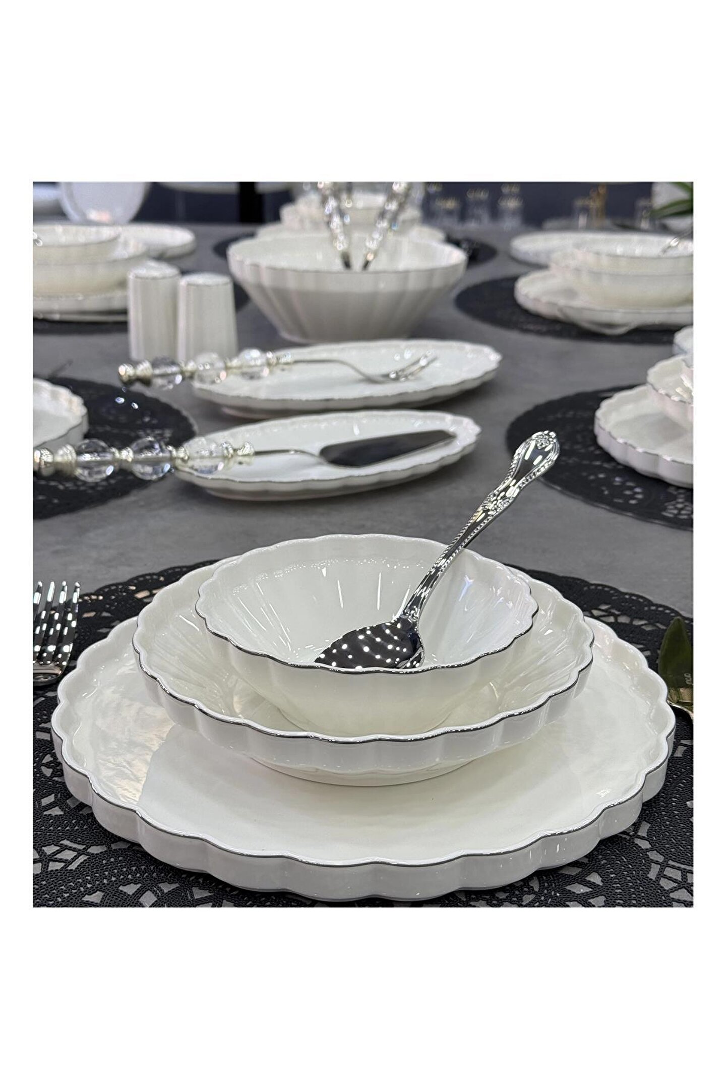 Mien Lüx Porselen 29 Parça İstiridye Yemek Takımı Gümüş
