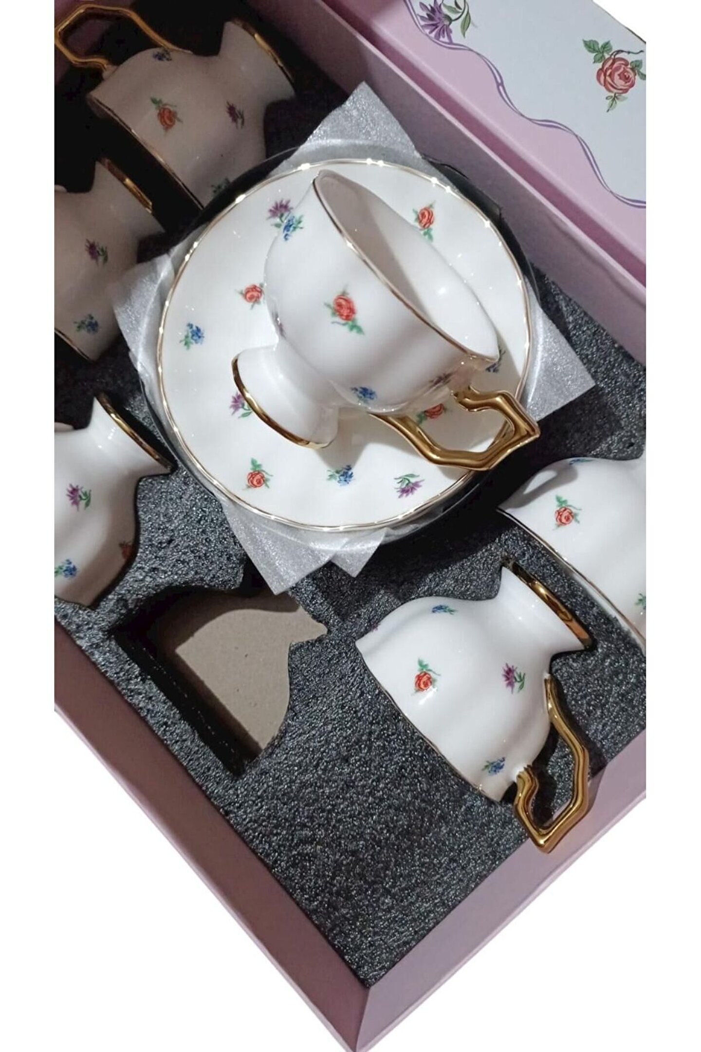 Her biri özenle tasarlanmış 6 adet fincan ve 6 adet tabağıyla set halinde sunulur. Kahve sunumlarınıza zarafet katmak ve klasik bir atmosfer yaratmak isteyenler için idealdir.