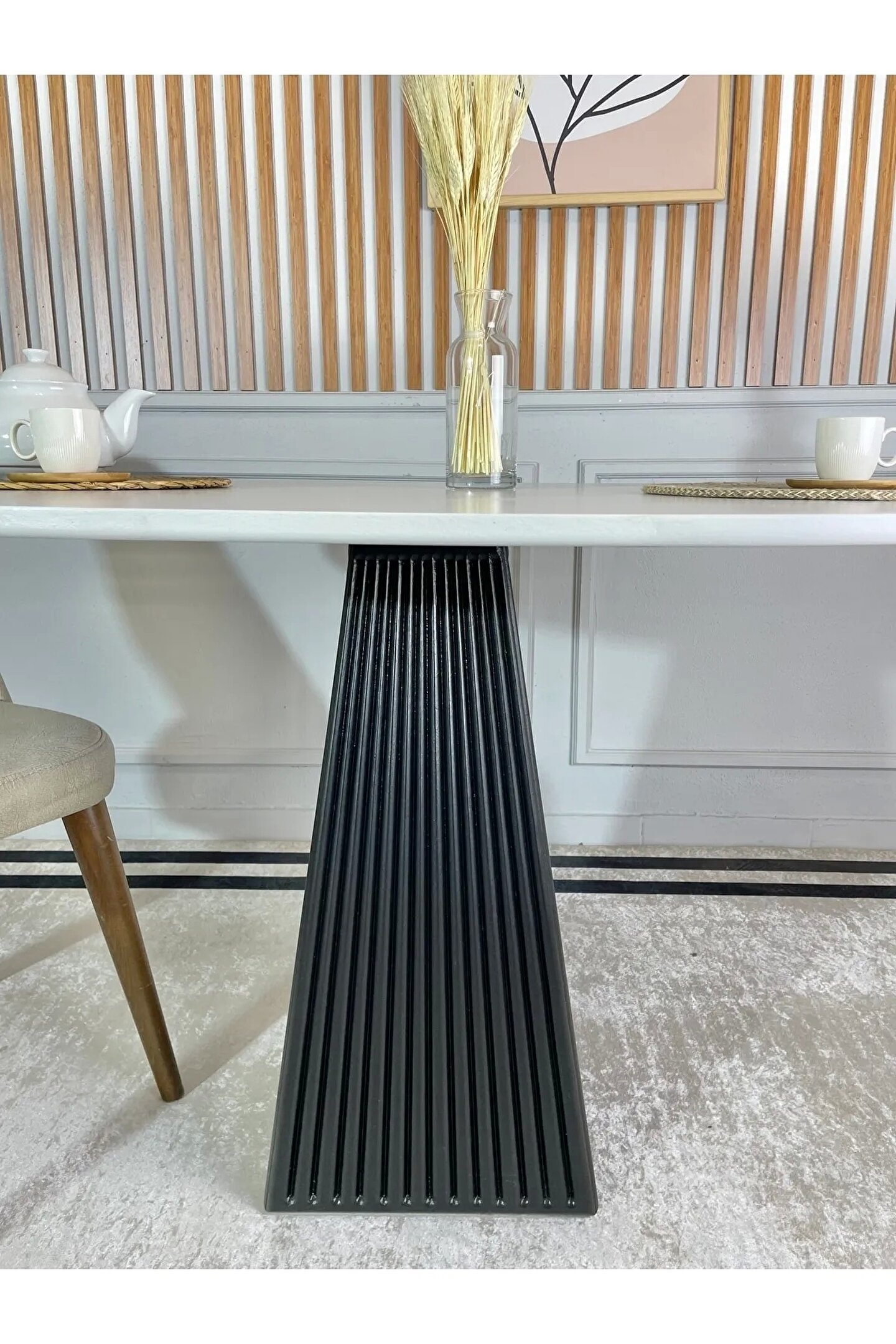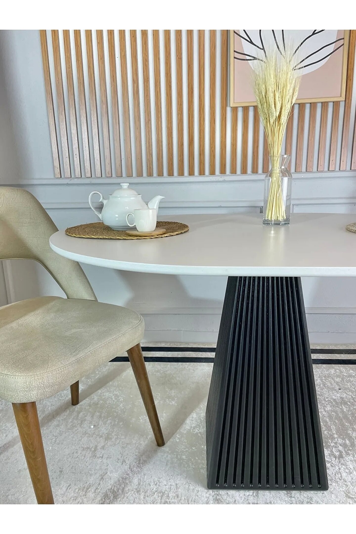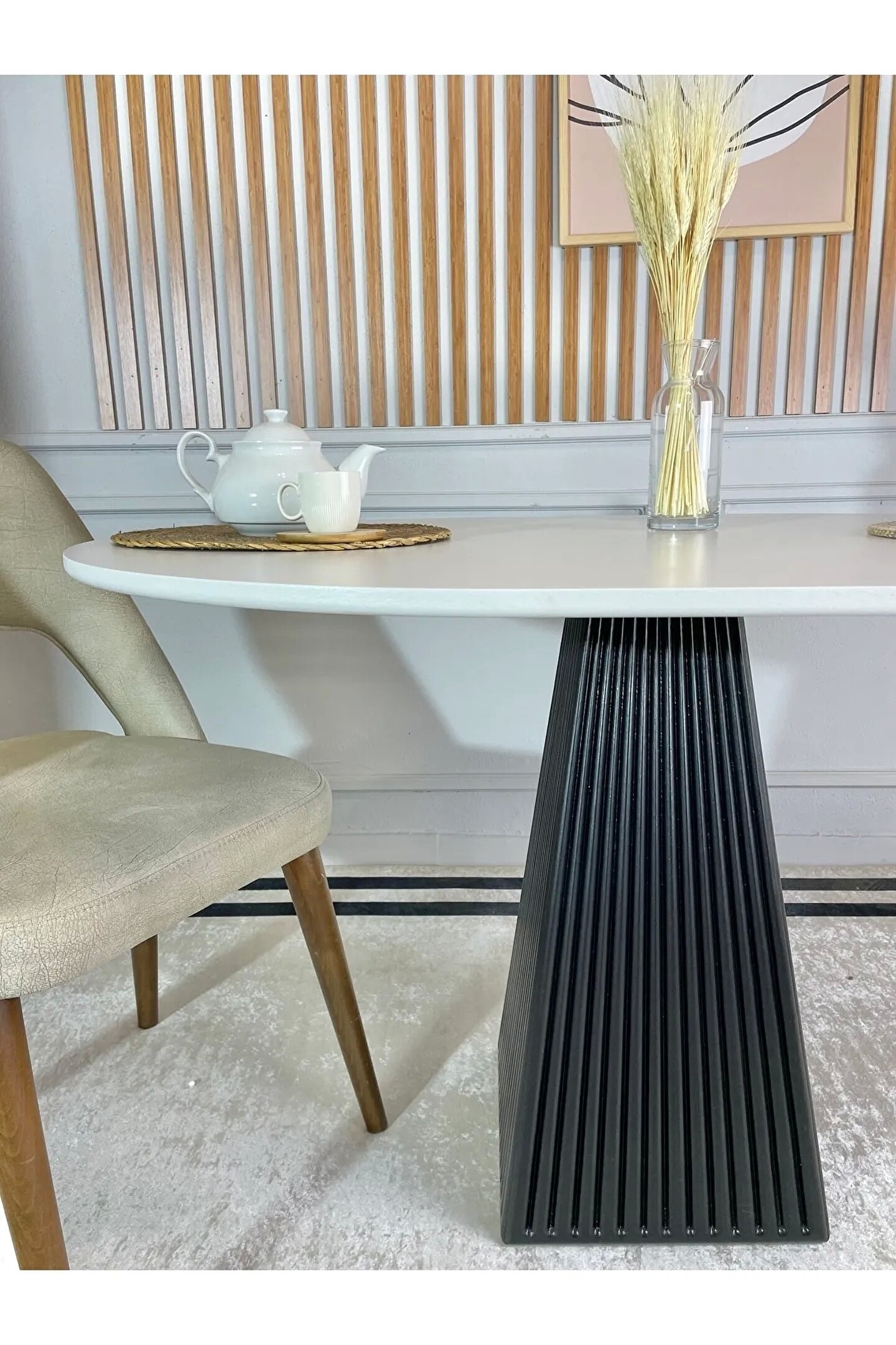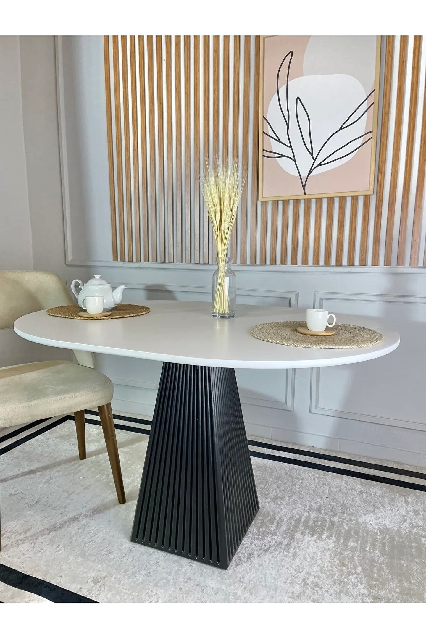 MIRRORLANDHOMEDESIGN 120x90 Cm Oval Siyah Fitilli Ahşap Yemek Masası - Fungi Serisi - Balkon Ve Kafe Masası