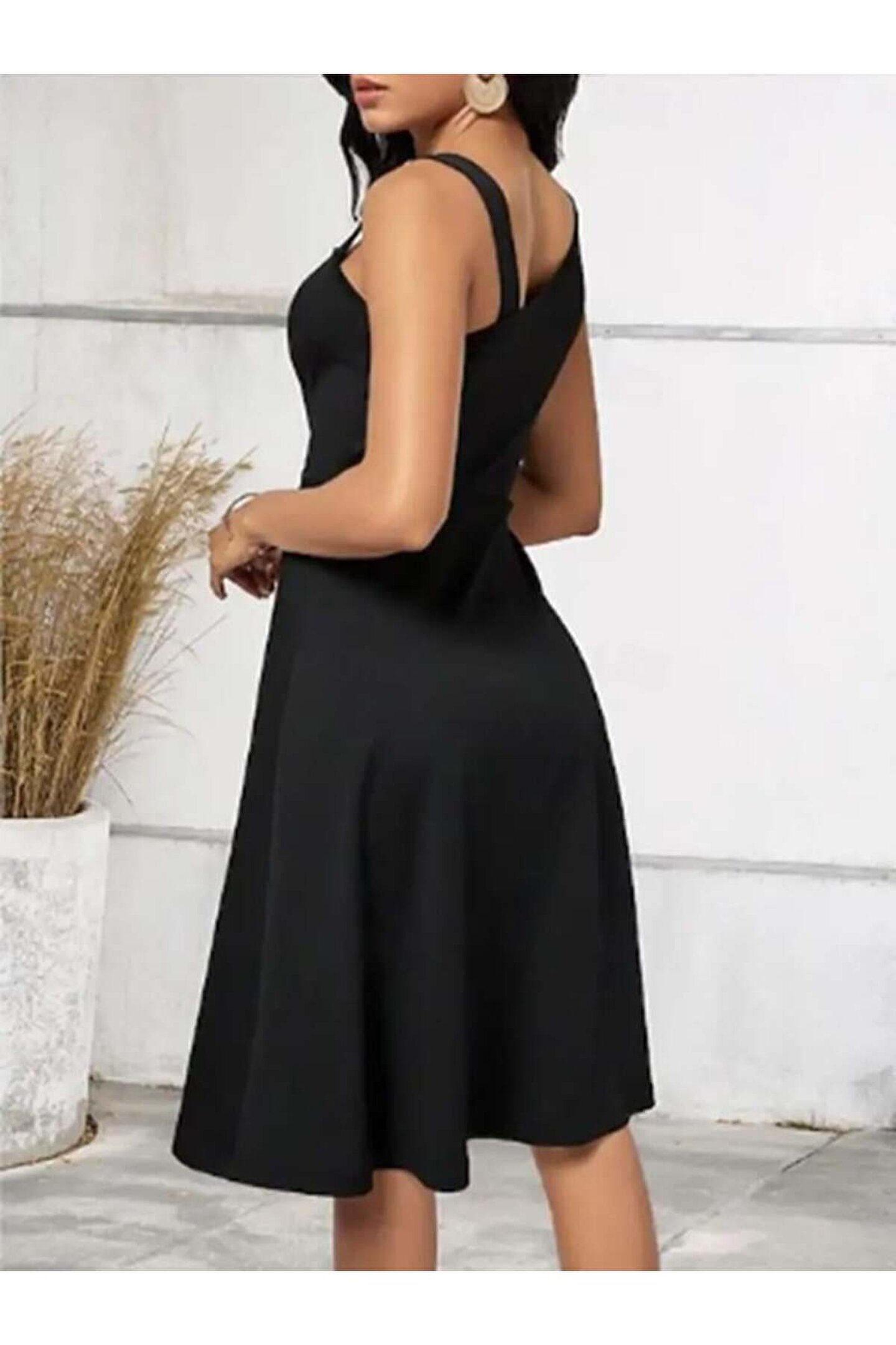 MissRunin Kadın Tek Omuzu şerit Detaylı Sıfır Kol Yandan Düğme Detaylı Janjan Krep Elbise
