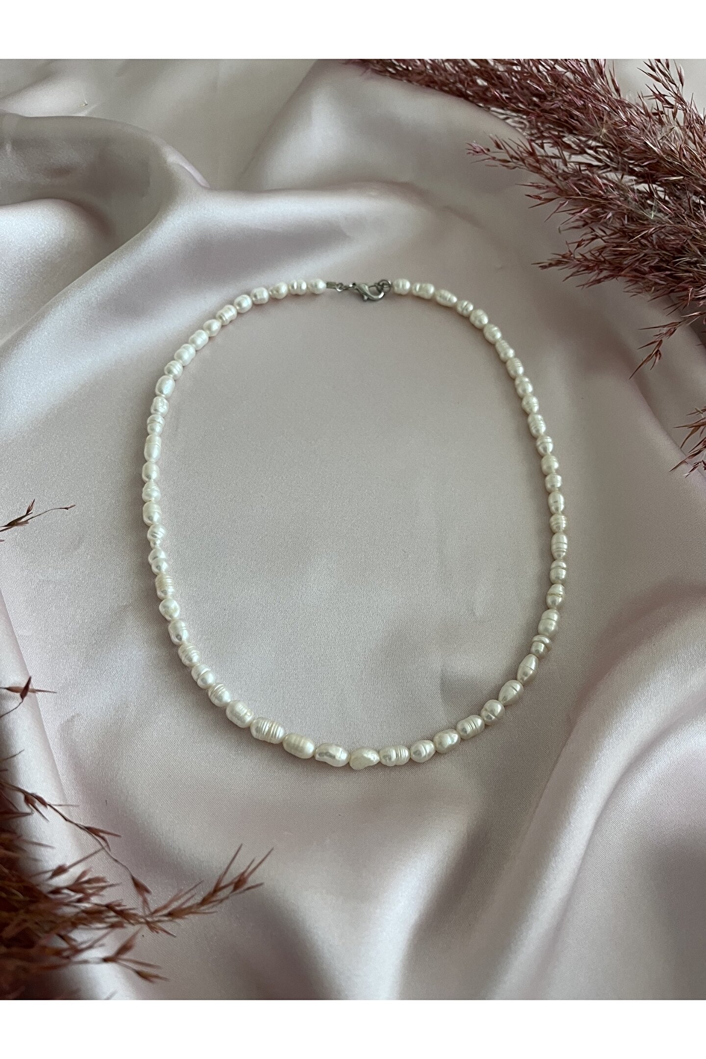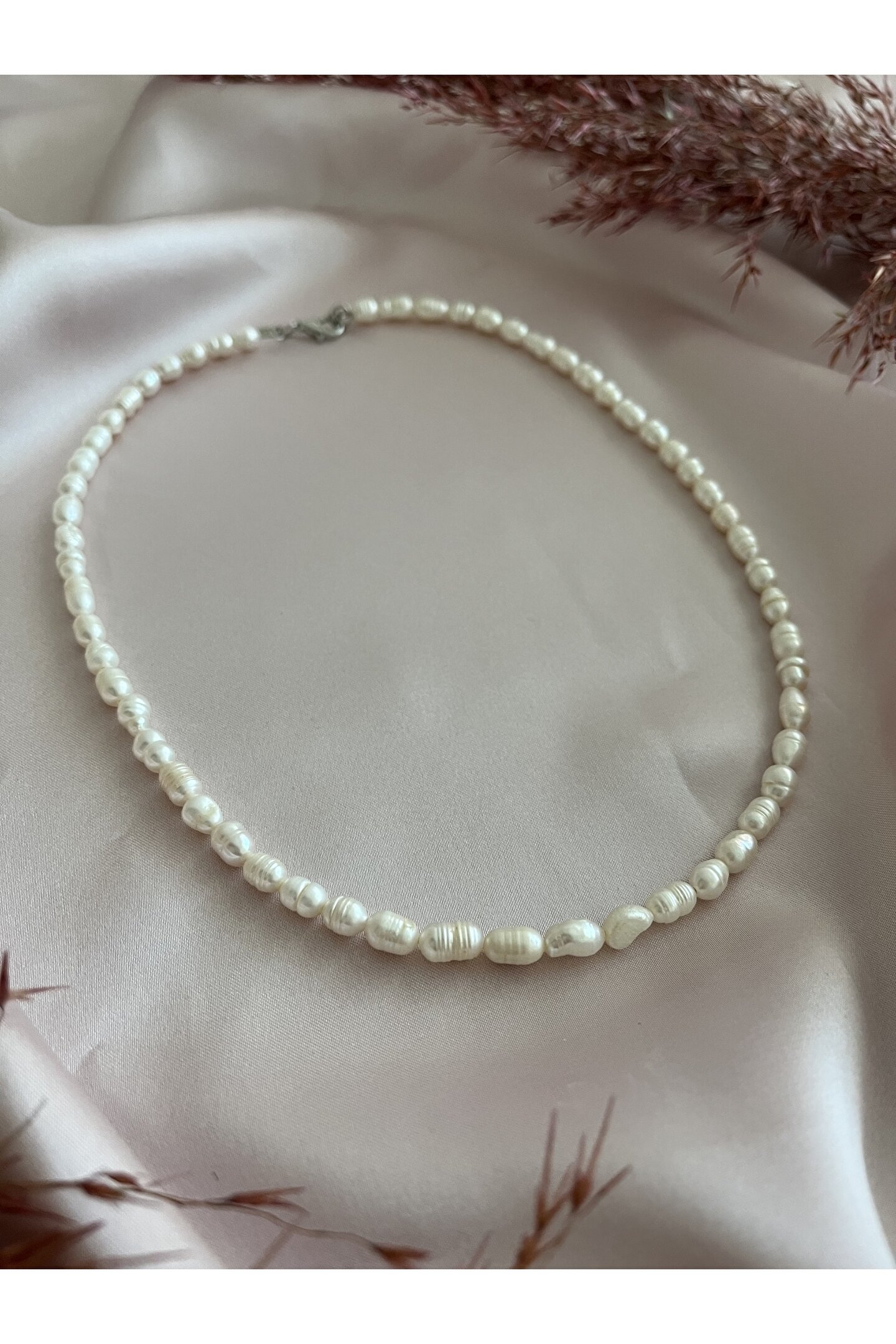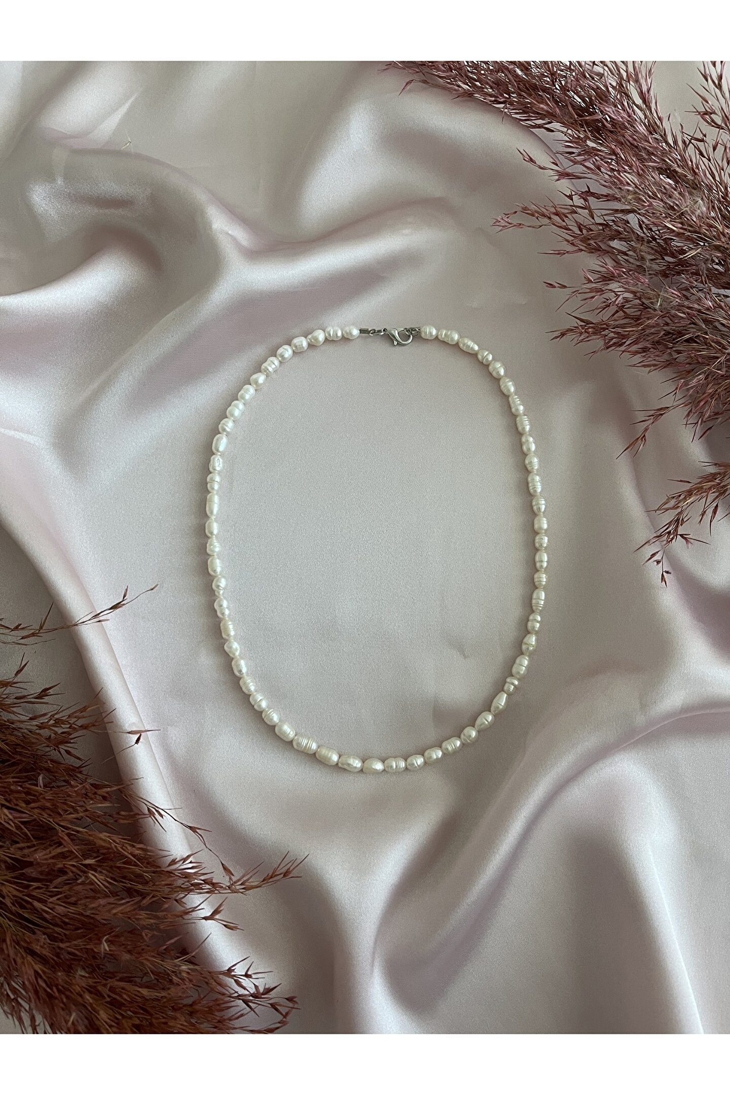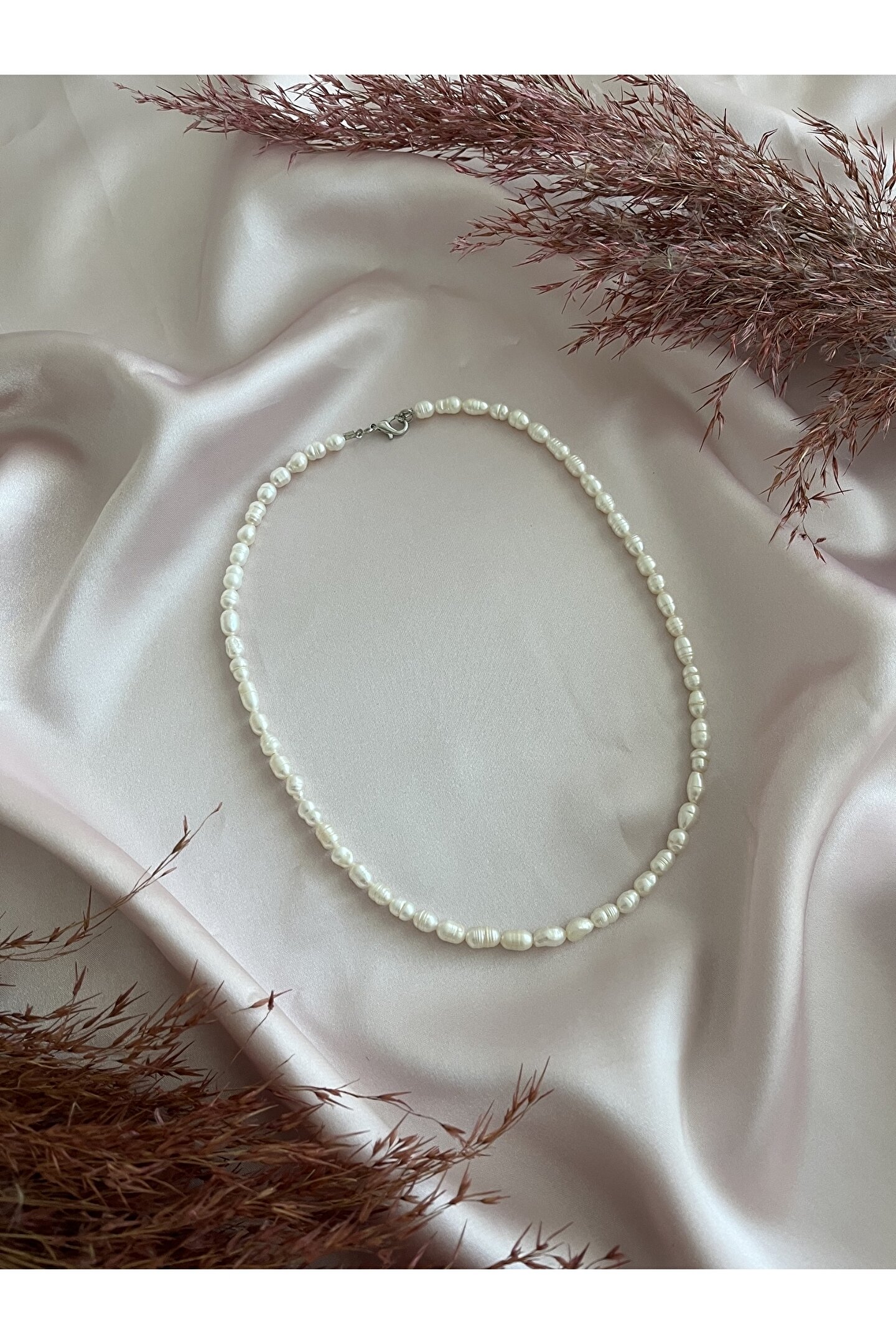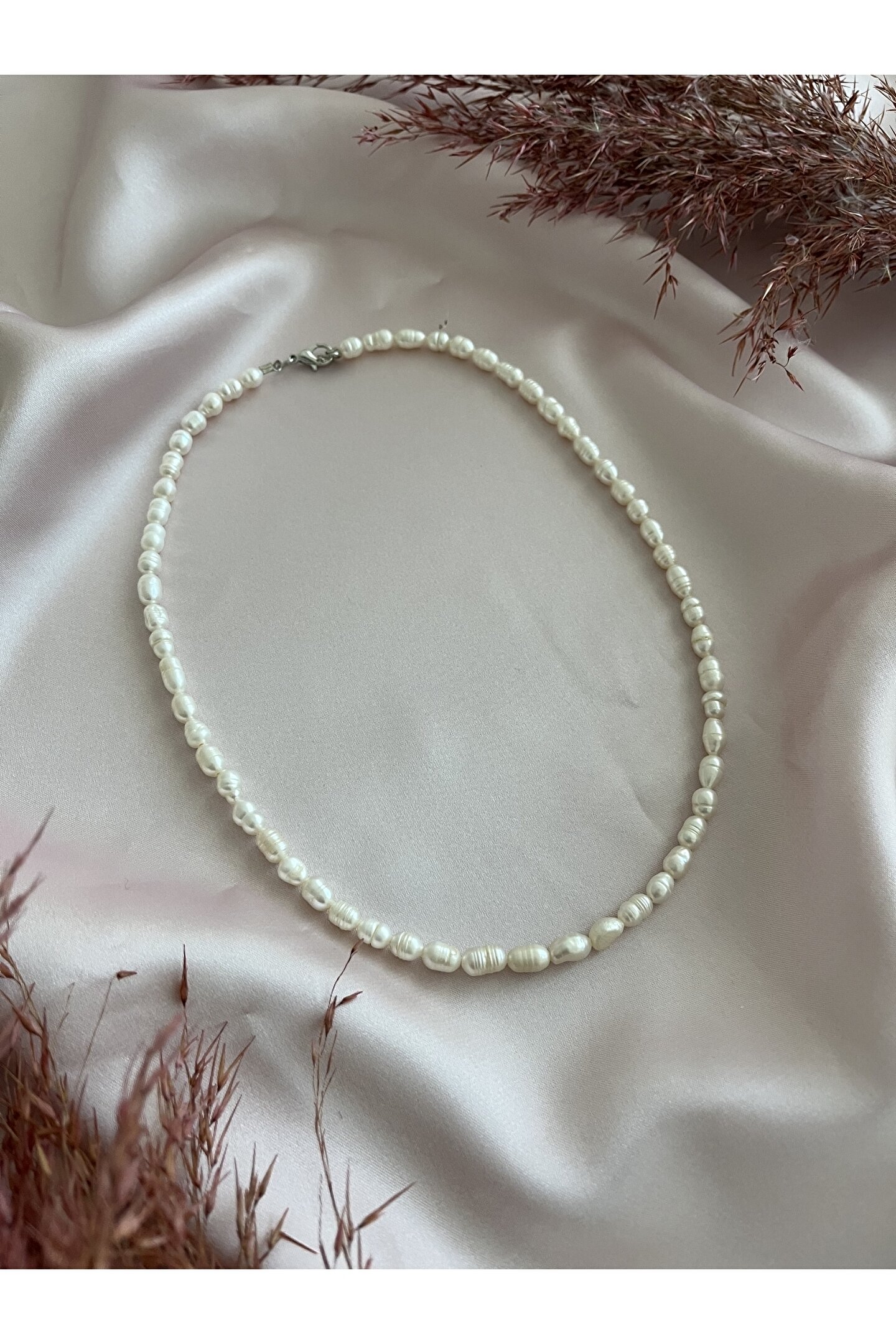 Mistik Tasarım Gerçek Inci Kolye Tatlı Su Incisi Arpa Model Inci (45 CM)