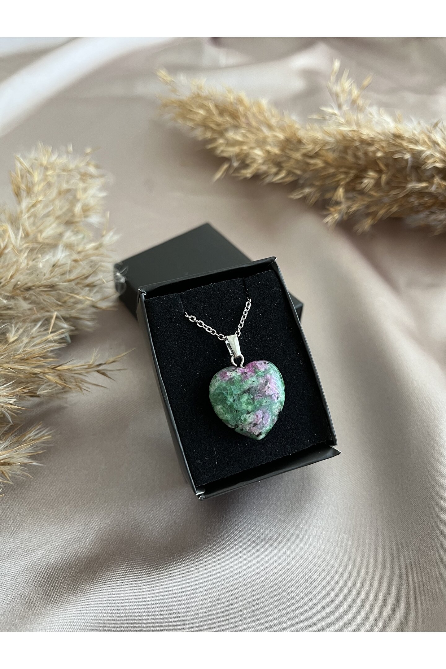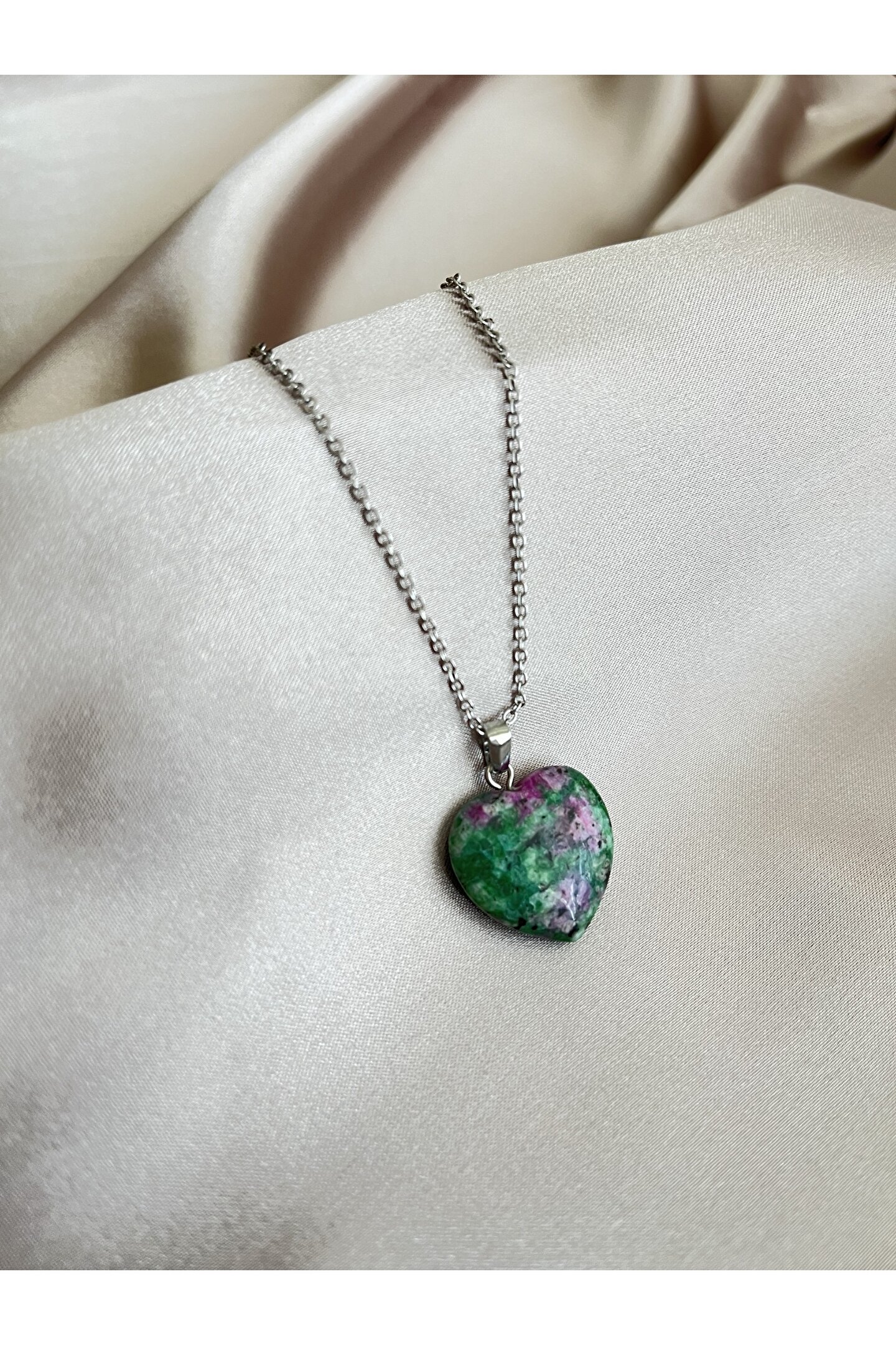 Ürün Bilgisi: Zincir uzuluğu 45 cm olup kararmayan (demir üzeri lak kaplama) zincir kullanılmıştır. Kolyenizin ilk günkü parlaklığını korumanız ve daha uzun süre sağlıklı kullanmanız için parfüm vb. kimyasallara karşı temastan kaçınmanız önerilir. Anyolit taşı yeşil zoisit ve kırmızı yakut karışımıdır. Anyolit taşı; kişinin oto kontrol mekanizmasını geliştirir, benlik saygısını arttırır, iyileştirici özelliklere sahiptir, kişinin uyumlanmasını sağlar, ruhsal olarak büyüme sağlar, rahatlatır, mutlu eder, cesaret verir, kök çakraları açar, psişik yetenekleri güçlendirir, sezgileri arttırır ve canlılık kazandırır. Üçüncü göz çakrasındaki bağı güçlendirebilir. Bireysel farkındalığı arttırır.