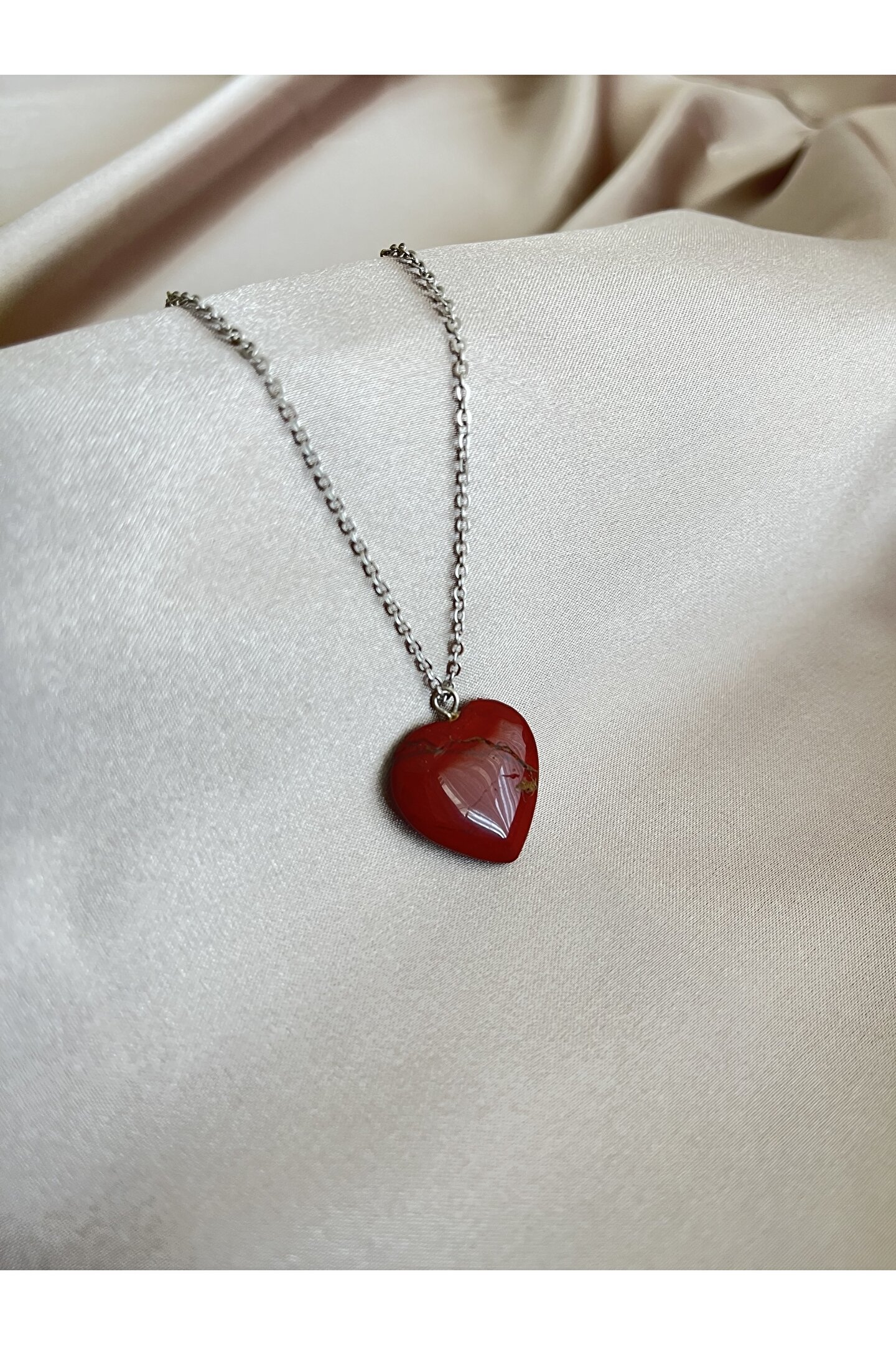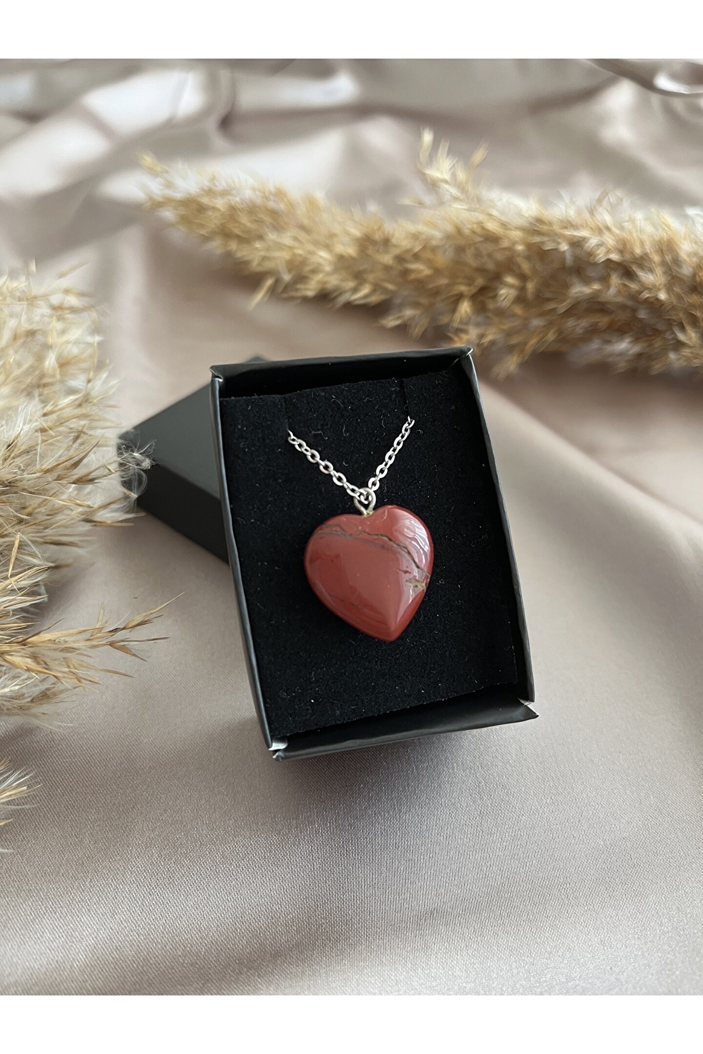 Mistik Tasarım Kalp Kesim Jasper Doğal Taş Kolye