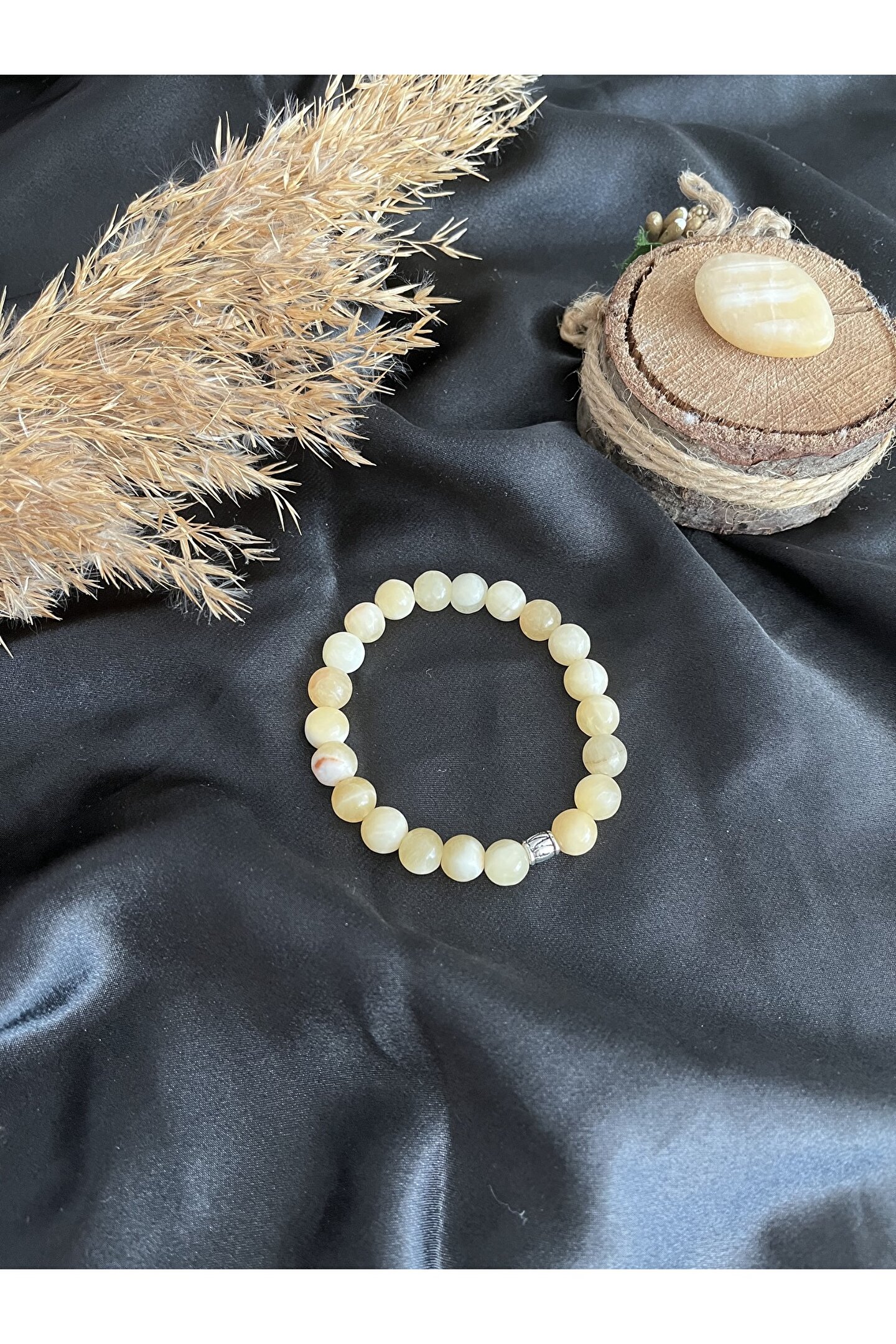 Doğal taş bileklik, her bir bileklikte bulunan benzersiz desen ve renklerle doğanın zarafetini yansıtır; Kalsit doğal taşı, bileklikte kullanılan ana malzeme olarak seçilmiştir ve bu sayede hem şıklığı hem de doğallığı bir arada sunar; Kalsit taşı, bileklikte kullanılan diğer taşlarla uyum sağlayarak estetik bir görünüm oluşturur ve her türlü kıyafetle kolayca kombinlenebilir;