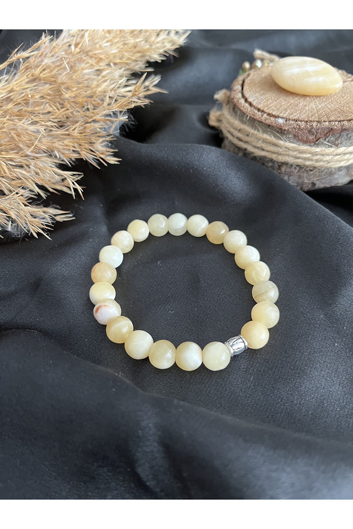 Doğal taş bileklik, her bir bileklikte bulunan benzersiz desen ve renklerle doğanın zarafetini yansıtır; Kalsit doğal taşı, bileklikte kullanılan ana malzeme olarak seçilmiştir ve bu sayede hem şıklığı hem de doğallığı bir arada sunar; Kalsit taşı, bileklikte kullanılan diğer taşlarla uyum sağlayarak estetik bir görünüm oluşturur ve her türlü kıyafetle kolayca kombinlenebilir;