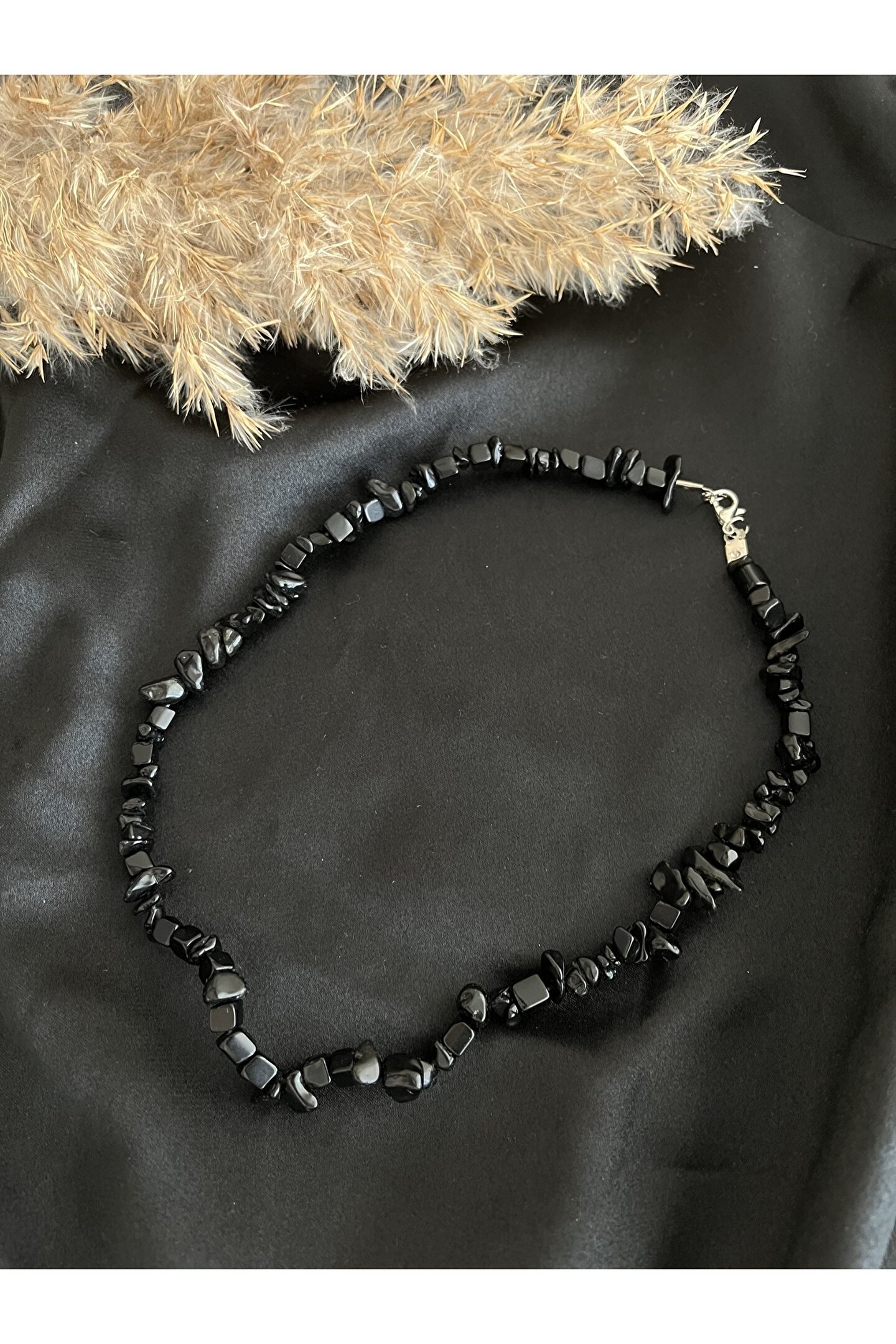 Mistik Tasarım Obsidyen Kırık Doğal Taş Kolye