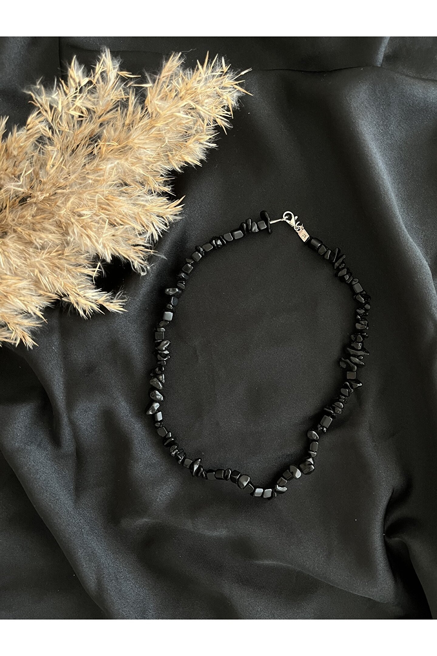 Mistik Tasarım Obsidyen Kırık Doğal Taş Kolye
