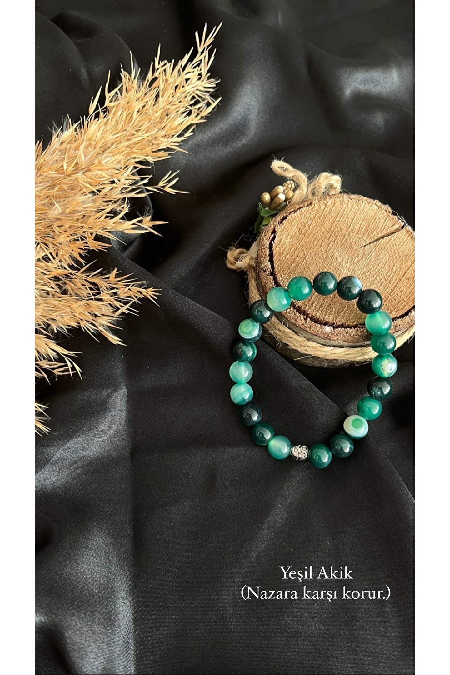 Bileklik 8 mm Yeşil Akik doğal taştan üretilmiştir.; ; Taşlarımız gerçek doğal taştır.; ; Doğal taşlar tabiatı itibariyle kendine özgü biçimdedir ve aynı taş cinslerinde dahi ufak tefek renk tonu ve biçim farklılıkları görülebilir.; ; Bu taşın doğadaki doğal oluşumuyla ilgilidir.; ; Belli aralıklarla topraklama yöntemiyle taşınızın enerjisini temizleyip taşlarınızı arındırabilirsiniz.; ; Yeşil akik taşı zihni netleştirerek karar verme mekanizmasını güçlendirmeye yarar.; ; Yeşil akik taşı tüm çakralar üzerinde etkilidir fakat yeşil rengi sebebiyle en çok Kalp çakrayı etkiler.; ; Nazara karşı koruyucudur.; ; Negatif enerjiyi pozitif enerjiye çevirir ve aurayı temizler.; ; Huzuru ve duygusal dengeyi sağlar.; ; Güçlü saldırganlık yaşayan veya aşırı duygular yaşayanlar için ideal olan bu taş dengeleyici bir yapıya sahiptir.; ; Yeşil akik, sakinleştirici titreşimi, bizi doğaya yakınlaştırmaya yardımcı olur ve modern toplumun kaosundan kopmamız gerektiğinde bir odaklanma duygusu getirebilir.;