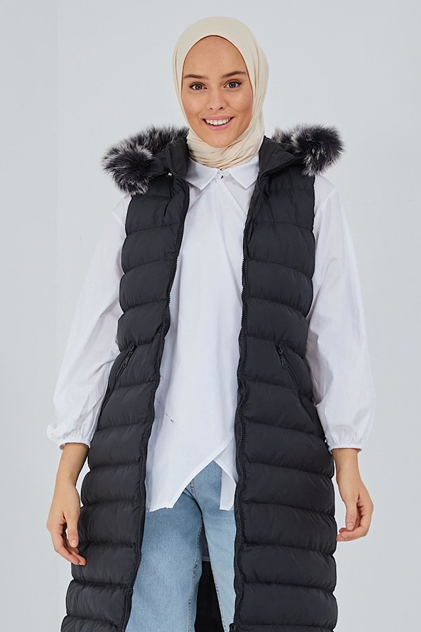Dolum tekniği ile üretilen bu yelek, soğuk havalarda sıcak tutan ve konforlu bir kullanım sunar; Fermuarlı kapama şekli sayesinde kolayca giyilip çıkarılabilir ve pratik bir kullanım sağlar; Günlük kullanıma uygun tasarımı ile rahatlığı ve şıklığı bir arada sunar; Standart kol tipi, hareket özgürlüğünüzü kısıtlamadan konforlu bir deneyim sağlar; Kapüşonlu yaka tipi, başınızı soğuktan korurken aynı zamanda stil sahibi bir görünüm kazandırır; Şişme silueti ile modern ve trend bir görünüm sunarken, vücut hatlarınıza uyum sağlar; Astarlı yapısı sayesinde ekstra konfor ve dayanıklılık sunar; Çift cepli tasarımı küçük eşyalarınız için pratik saklama alanları oluşturur; Relaxed kalıp ile rahat hareket etme özgürlüğü verirken her bedene uyum sağlar; Tüm yaş gruplarına hitap eden geniş kullanıcı yelpazesi ile herkes için idealdir; Genç yaş grubuna yönelik tasarlanmış olup din;