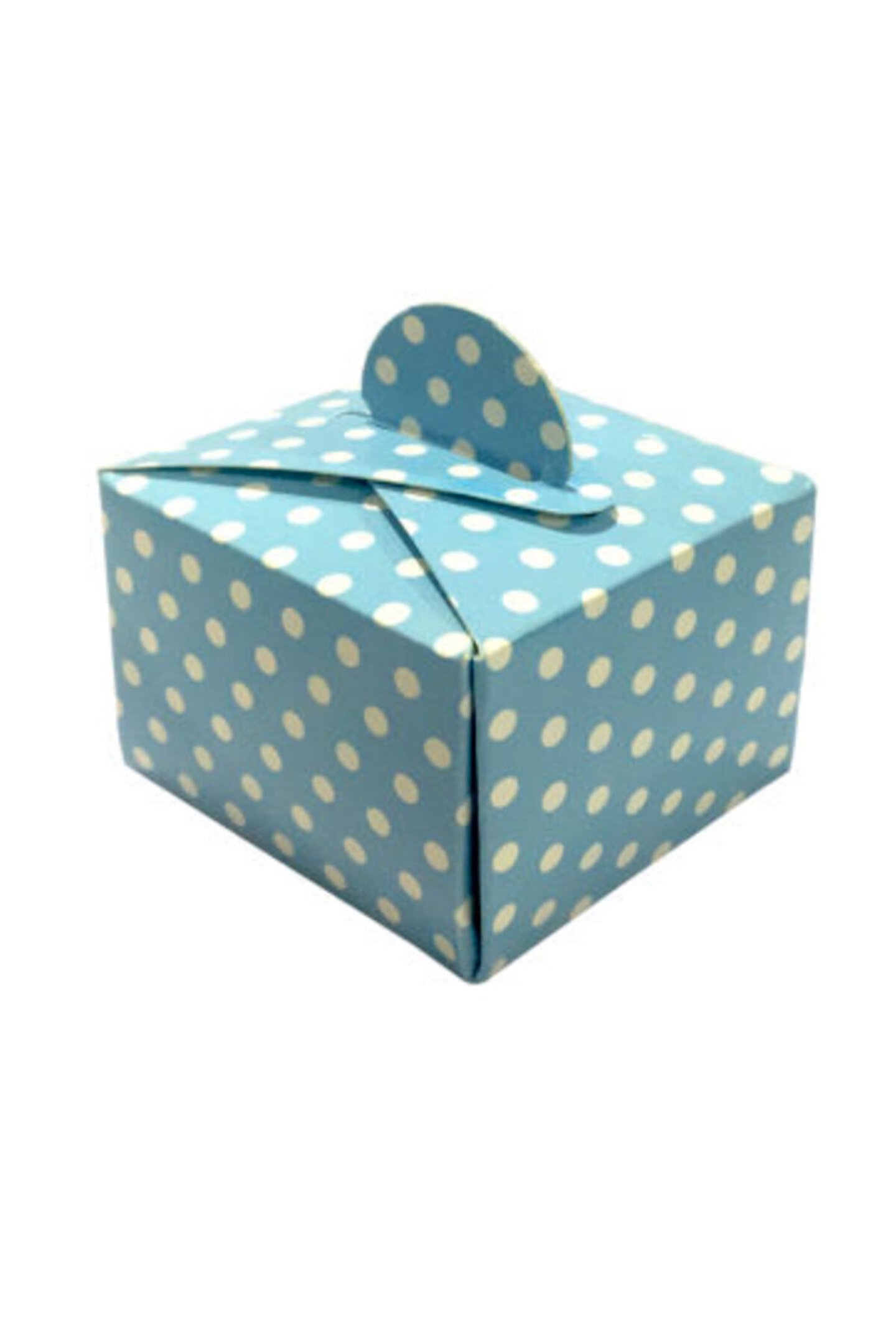 MkBalon Mavi Beyaz Puantiyeli Karton Kare Lokum Şeker Kutusu 50 Adet
