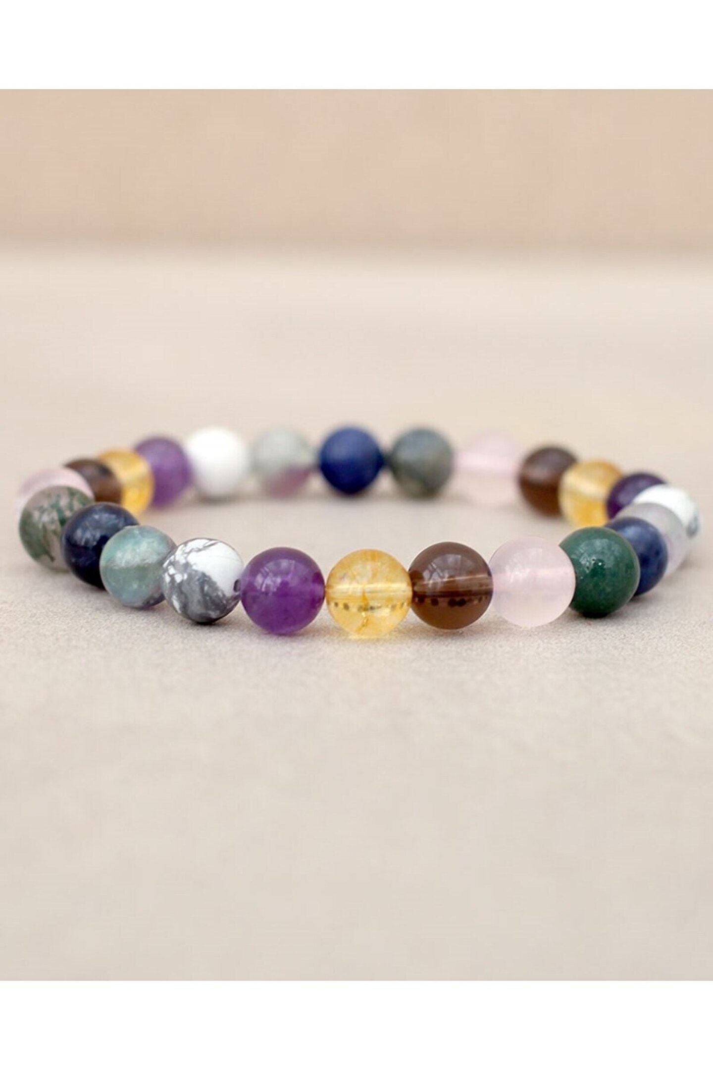Gençlerin tarzını yansıtan, doğal taş bileklik ile stilinizi tamamlar.; Doğal taşların sıcaklığını bileğinizde hissedin; her parça benzersizdir ve doğanın güzelliğini yanınızda taşır.; 8 mm kalınlığındaki doğal taş boncuklarla tasarlanmış bu bileklik, zarif ve şık bir görünüm sunar.; Panik atak gibi durumlarda bileğinize hafifçe dokunarak rahatlama sağlayacak şekilde tasarlanmıştır; stresli anlarda bileğinizdeki dokunuşun farkını hissedin.; Doğal taş bilekliğin her detayı, el emeğiyle özenle işlenmiştir ve uzun süreli kullanıma uygun dayanıklı yapıdadır.;