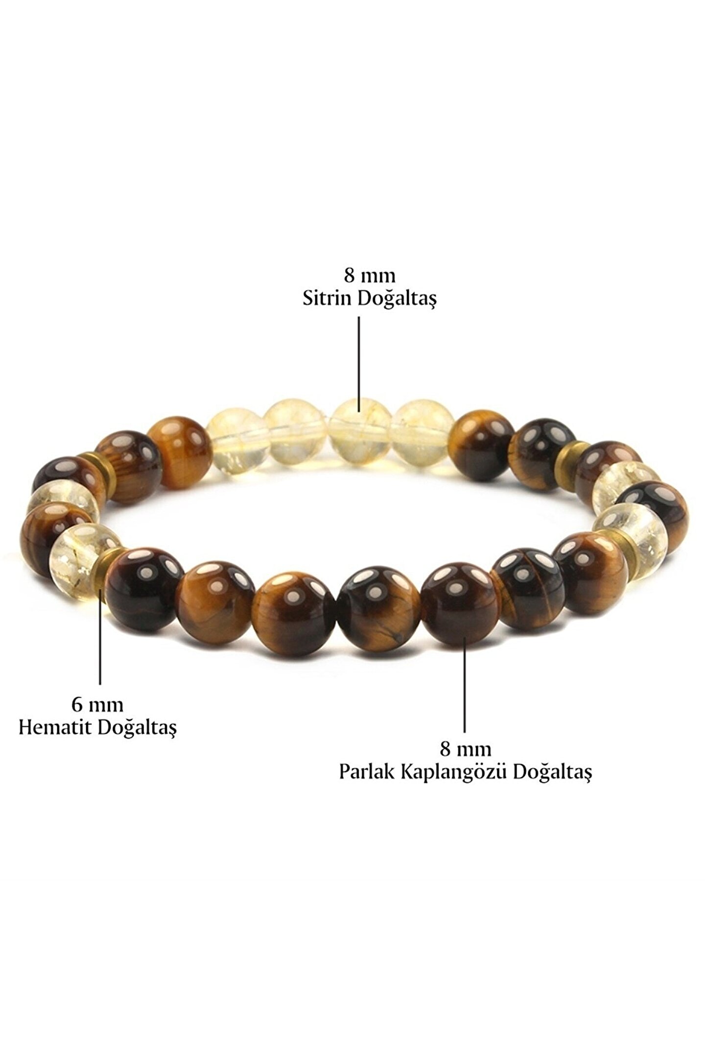 MMZ STORE Kaplan Gözü - Dönüşümlü Sitrin Doğal Taş Bileklik 8 mm