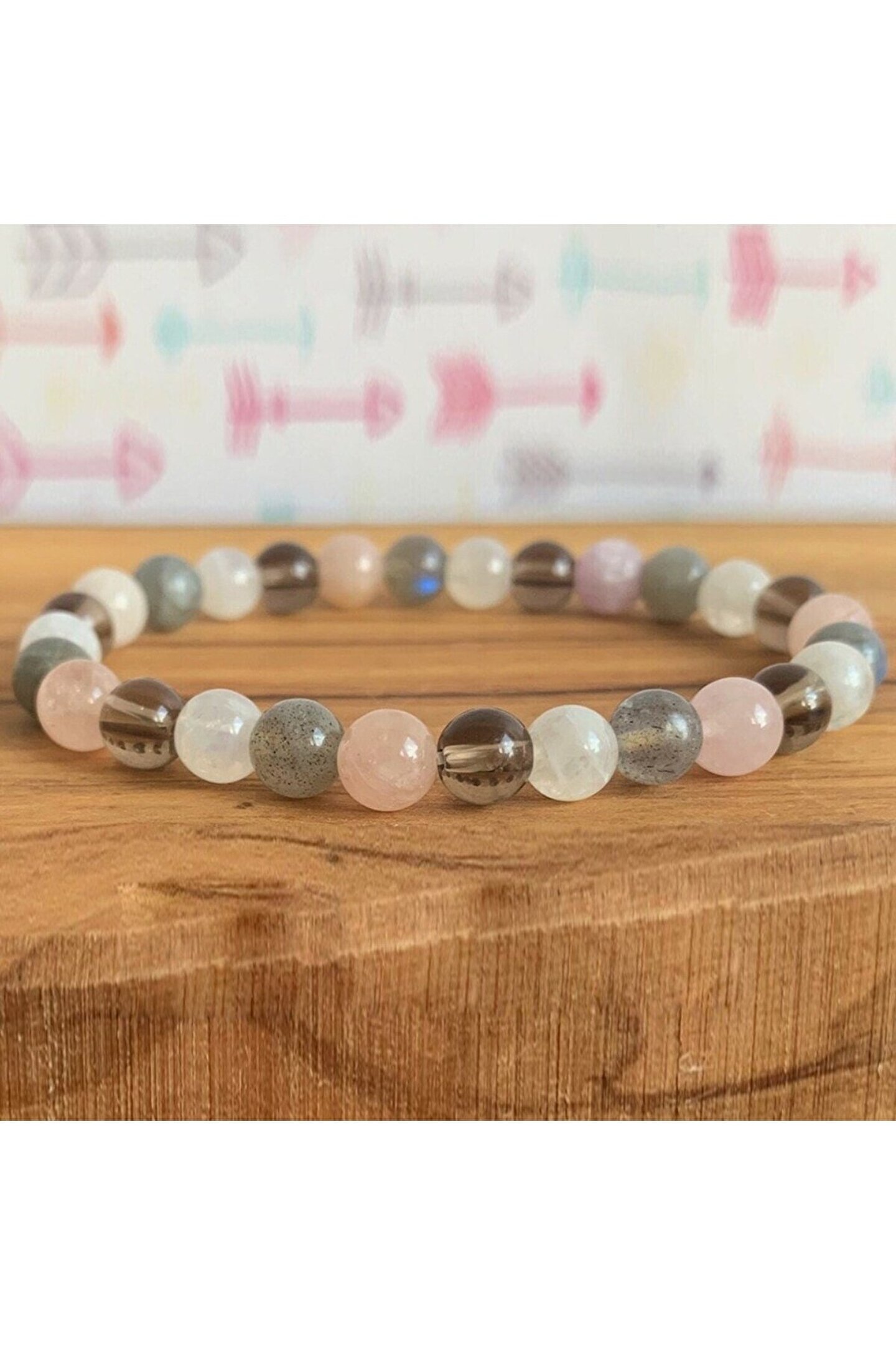 Doğal taş bileklik, şıklığınızı tamamlayacak zarif bir aksesuardır; Pembe kuvars, labradorit, ay taşı ve dumanlı kuvars gibi farklı renklerdeki doğal taşlar, bilekliğe benzersiz bir görünüm kazandırır; 8mm boyutundaki bu bileklik, hem günlük kullanım hem de özel günler için idealdir; Doğal taş materyali sayesinde her parça benzersizdir ve doğanın güzelliklerini bileğinizde taşımanızı sağlar;