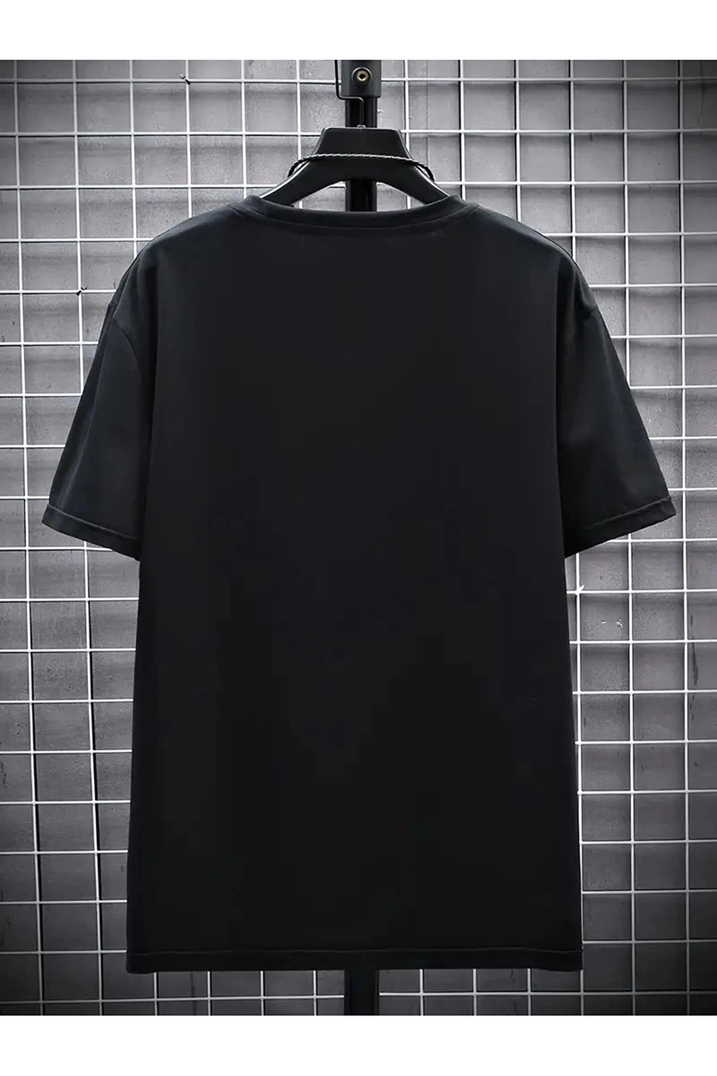 MODA 201 Penye Compack FUTRE Baskılı Oversize Kısa Kol Bisiklet Yaka T-shirt - Siyah