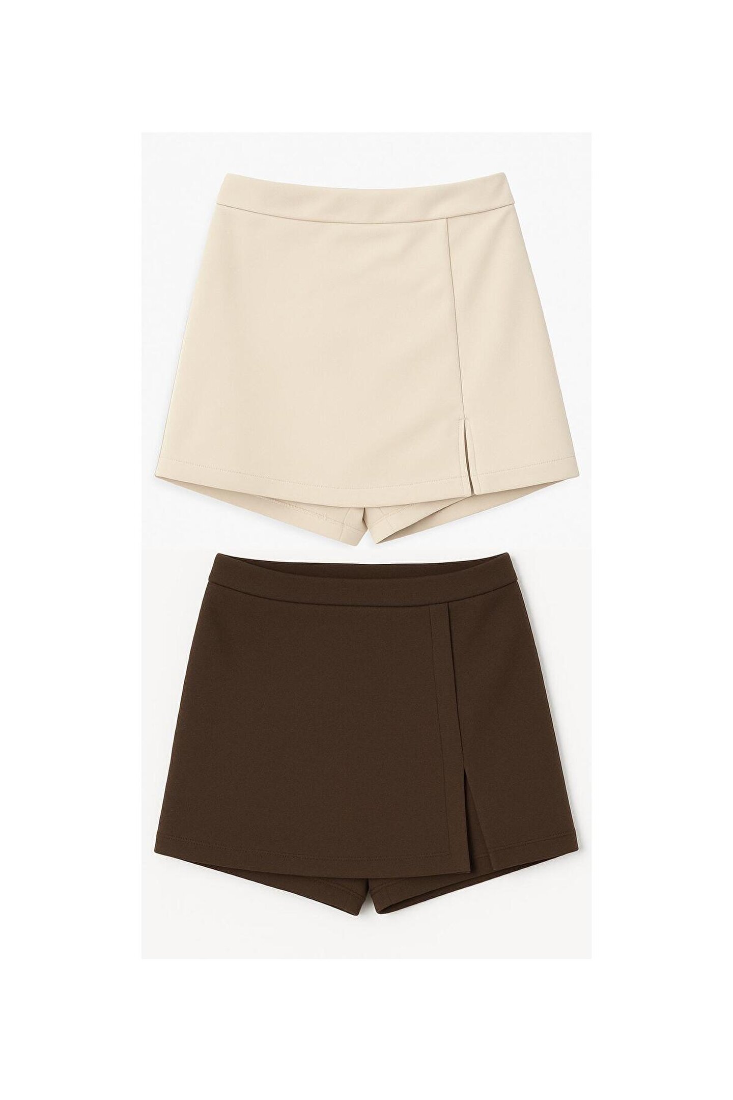 moda armanc 2li Yırtmaçlı Mini Şort Etek