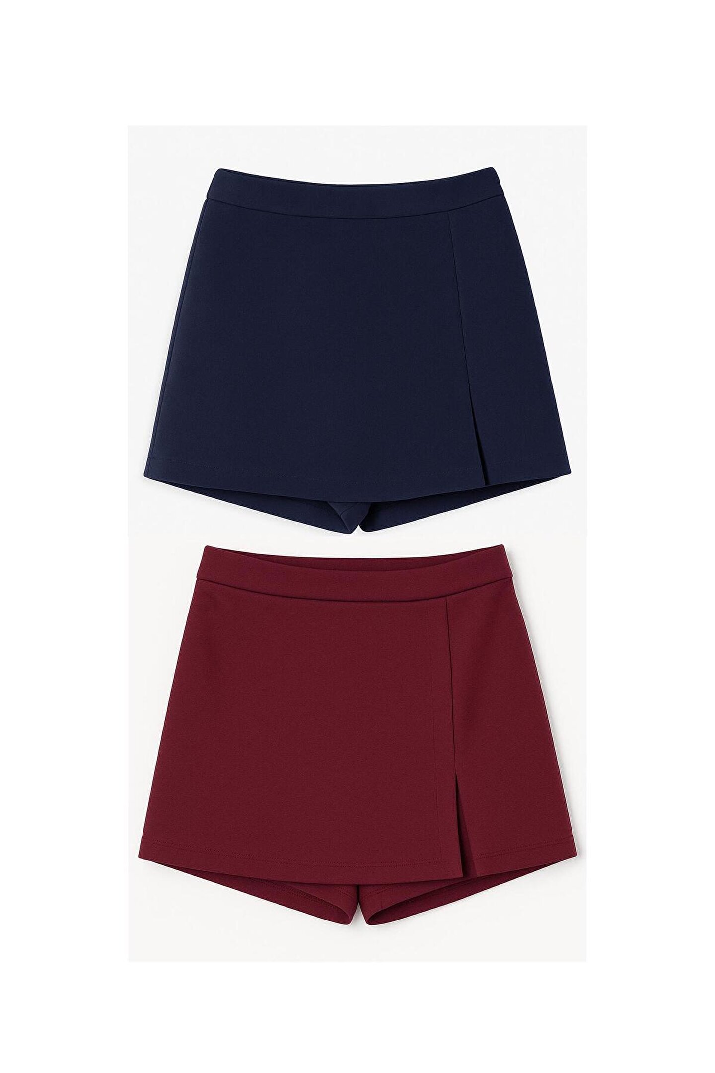 moda armanc 2li Yırtmaçlı Mini Şort Etek
