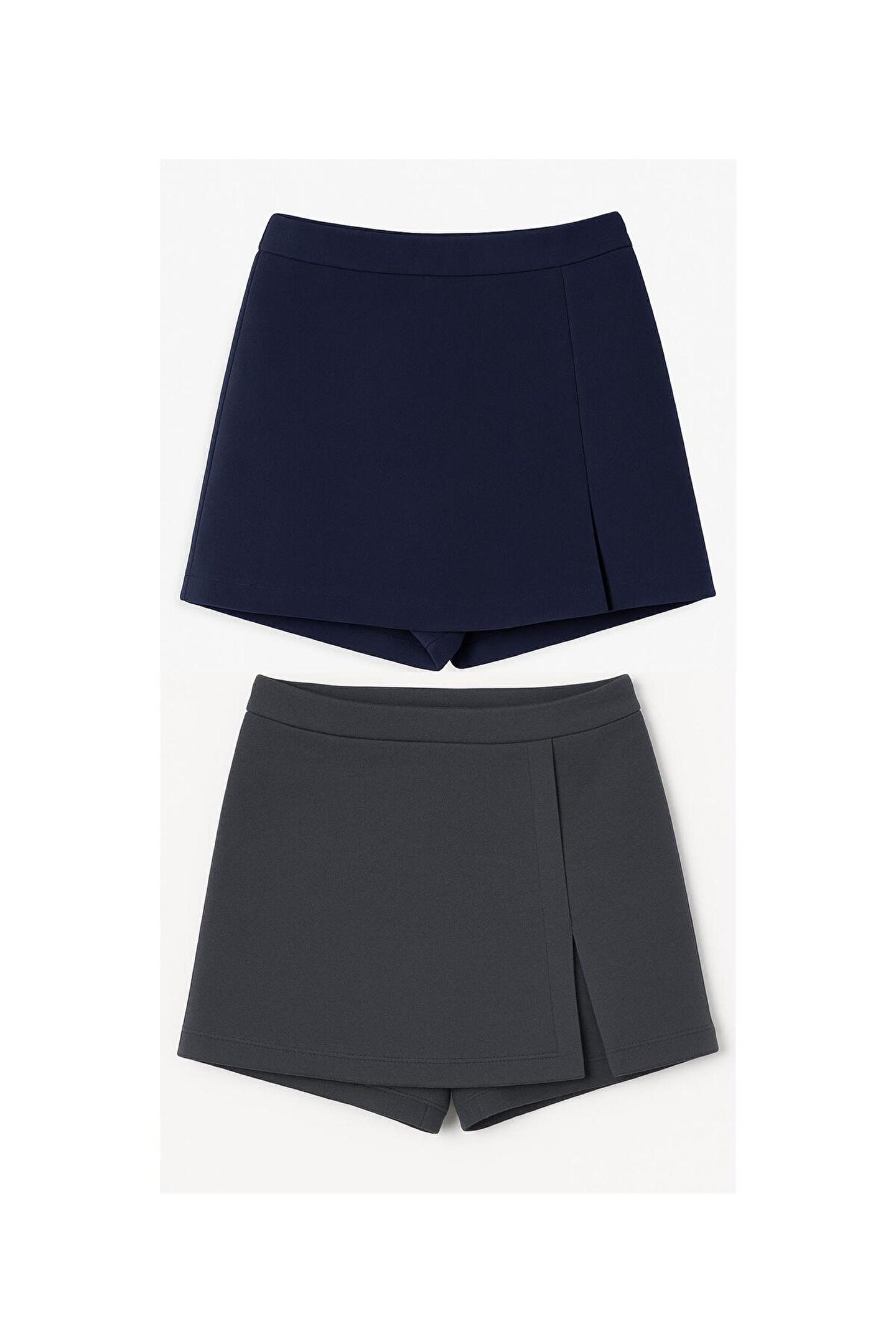 moda armanc 2li Yırtmaçlı Mini Şort Etek
